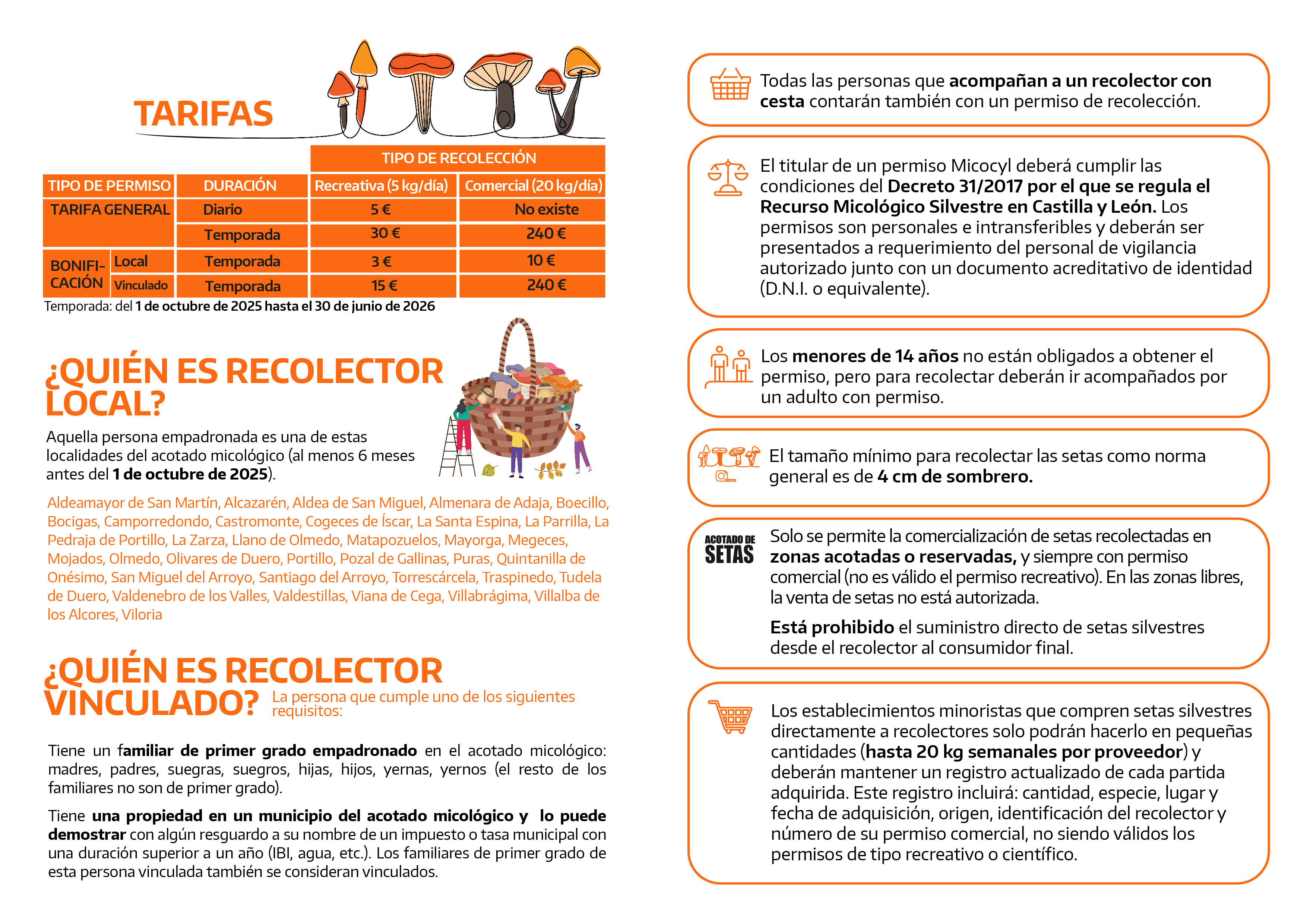 CARTELERÍA Y FOLLETOS DE PERMISOS PARA LA RECOLECCIÓN DE SETAS EN LA TEMPORADA 2024-2025 EN EL ACOTADO MICOLÓGICO CORRESPONDIENTE A LA REGIÓN DE ALDEAMAYOR DE SAN MARTÍN (VA-50.001)