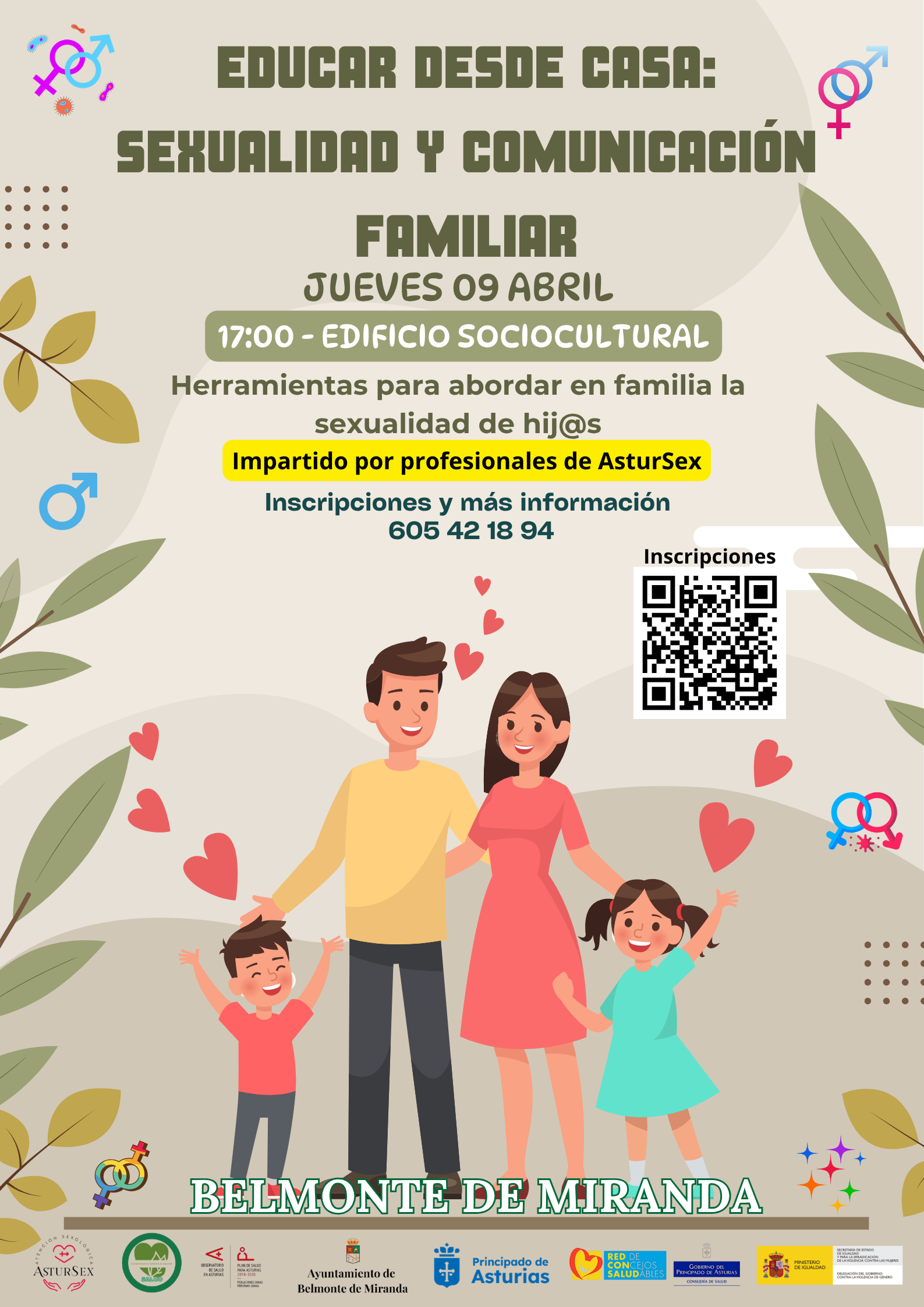 El jueves, 9 de abril, a las 17:00 h tendrá lugar un taller en Belmonte de Miranda sobre educación familiar en sexualidad y comunicación.