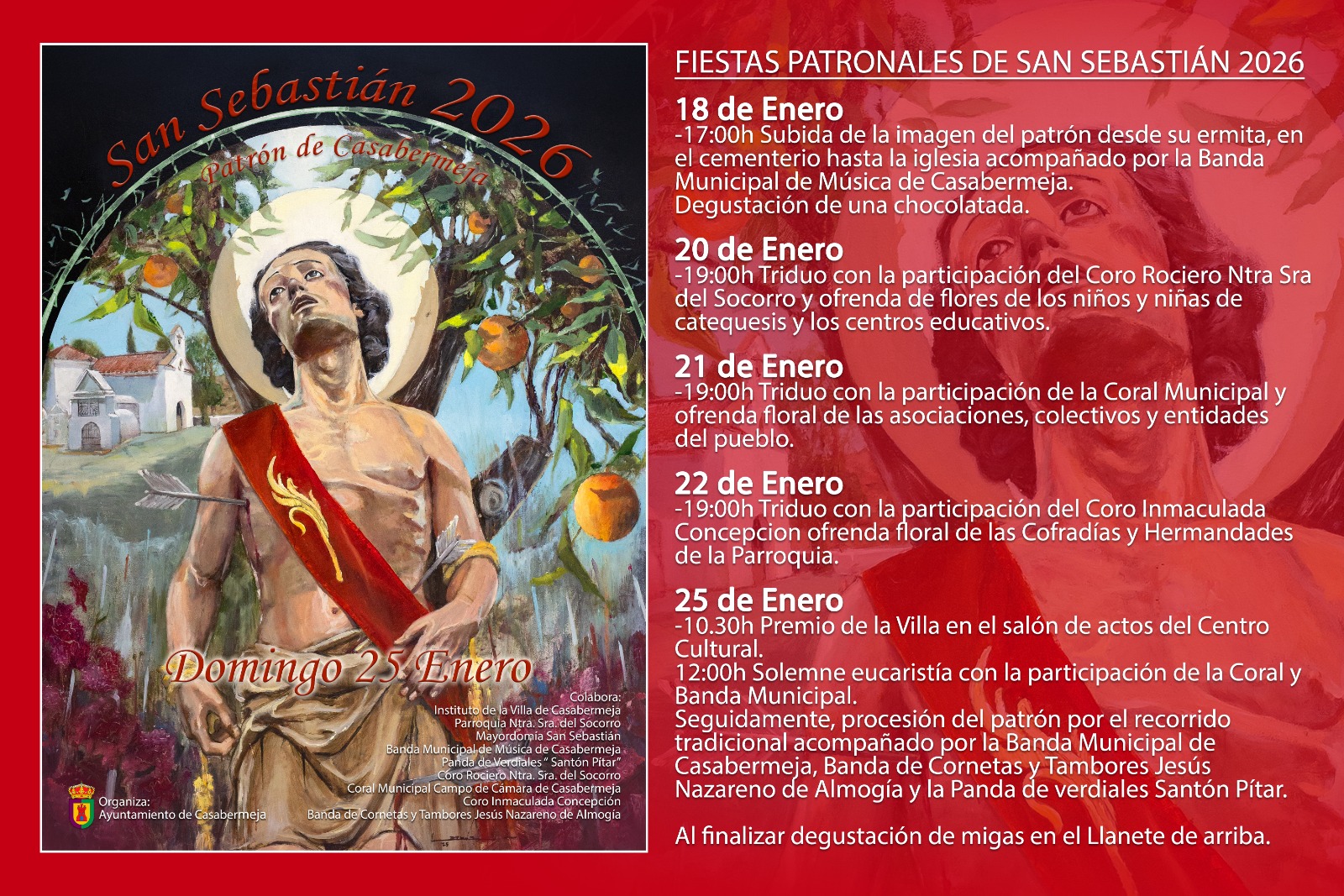El Ayuntamiento de Casabermeja informa de las actividades previstas para hoy domingo 18 de enero, con motivo de las Fiestas Patronales de San Sebastián: