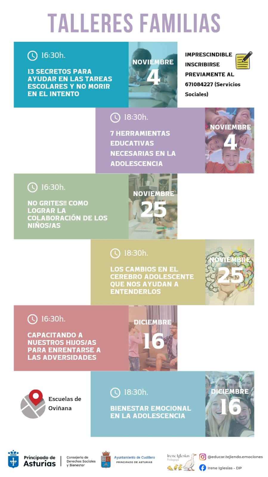 Durante los meses de noviembre y diciembre ofrecemos una serie de talleres familiares en las Escuelas de Oviñana, impartidos por Irene Iglesias, pedagoga y especialista en disciplina positiva.
