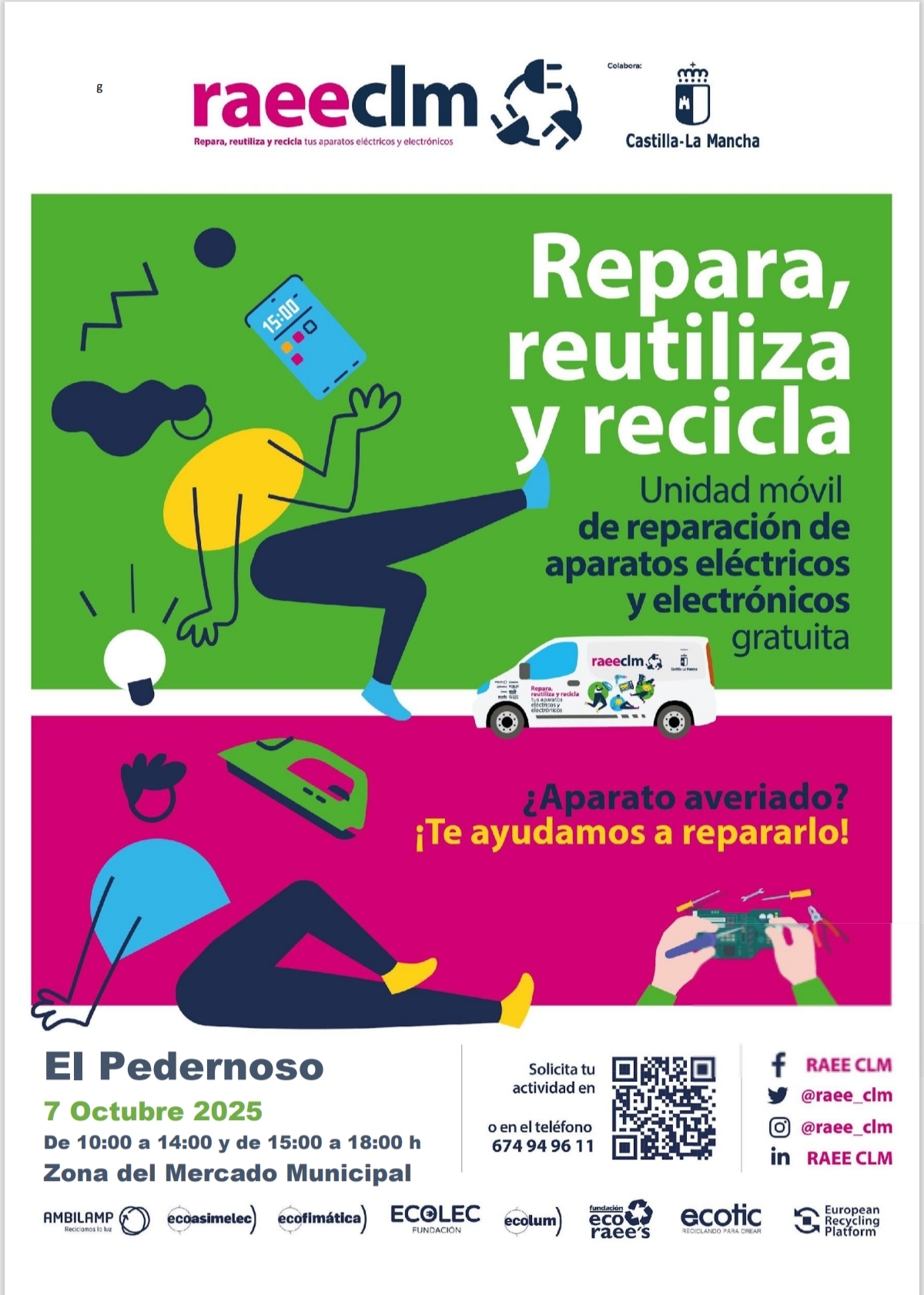 Llega a El Pedernoso una 🚙🛠️ Furgoneta-Taller itinerante de reparación y reciclaje de aparatos eléctricos y electrónicos.