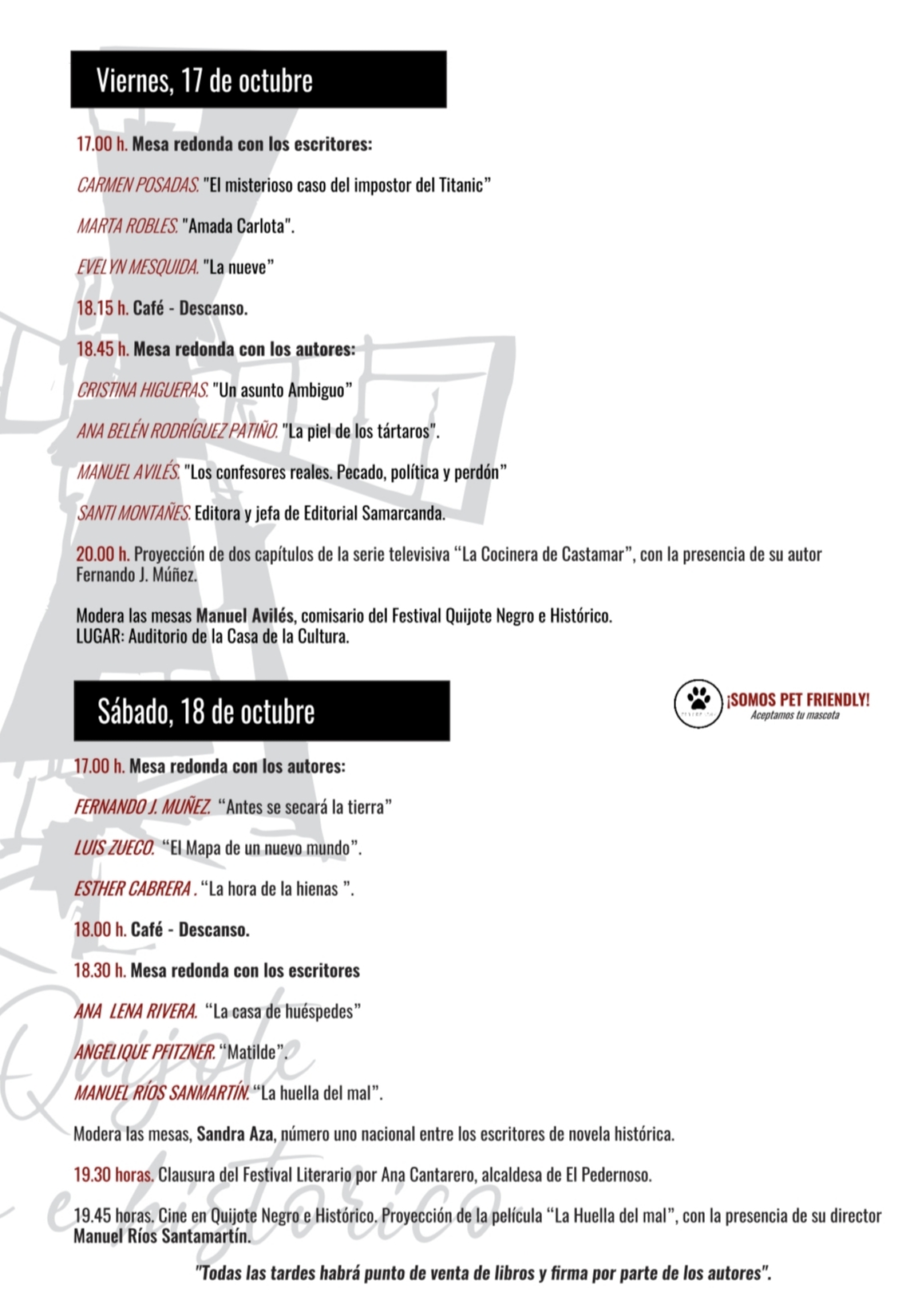 📖🎶✍🏼 Literatura, cine , directores y actrices, grandiosos escritores, clubes de lectura, lectores, cultura, tertulias... convertirán a El Pedernoso en el epicentro de la literatura negra e histórica durante los días 15 a 18 de octubre.
