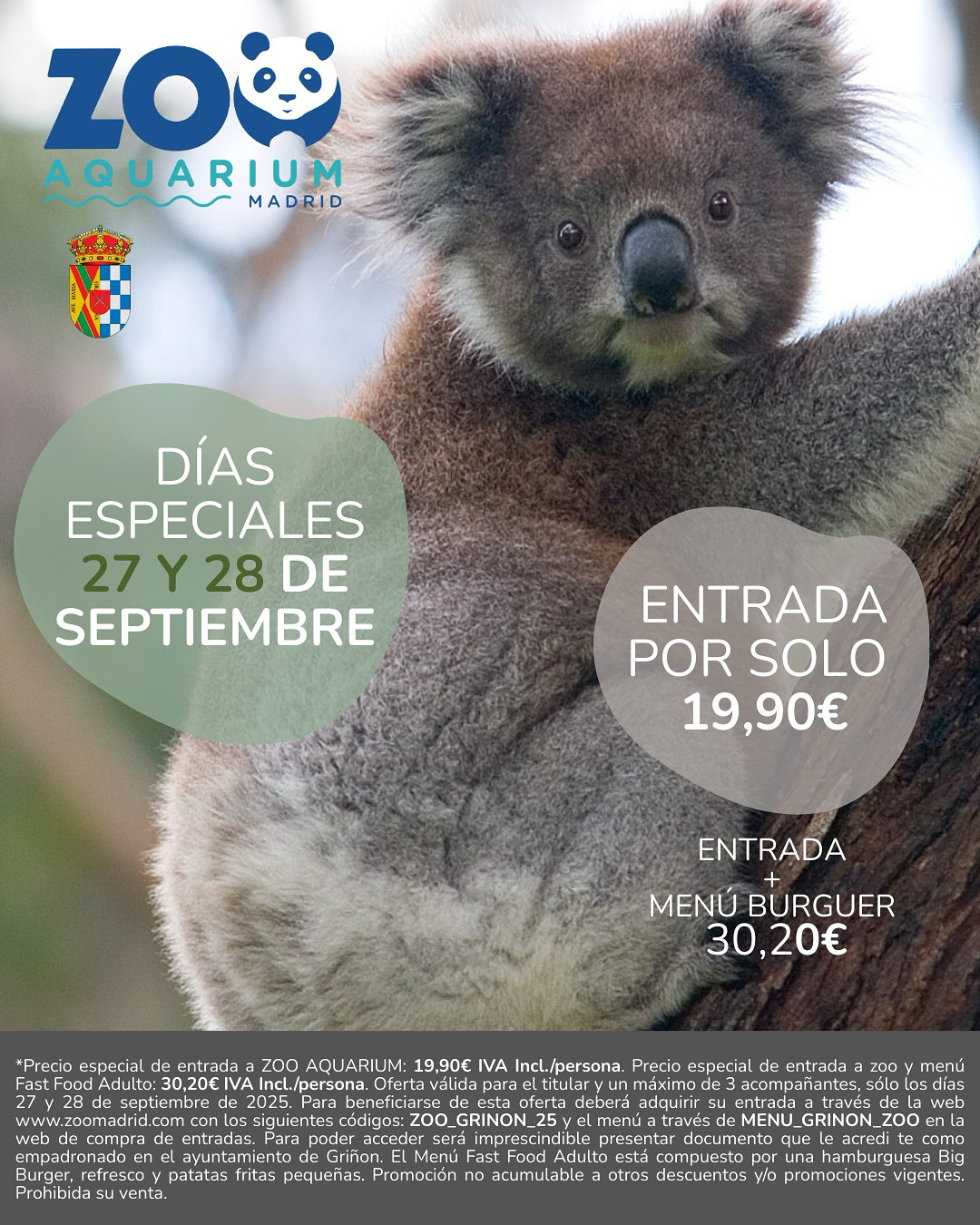 👥 Oferta válida para personas empadronadas en Griñón y hasta 3 acompañantes por persona empadronada.