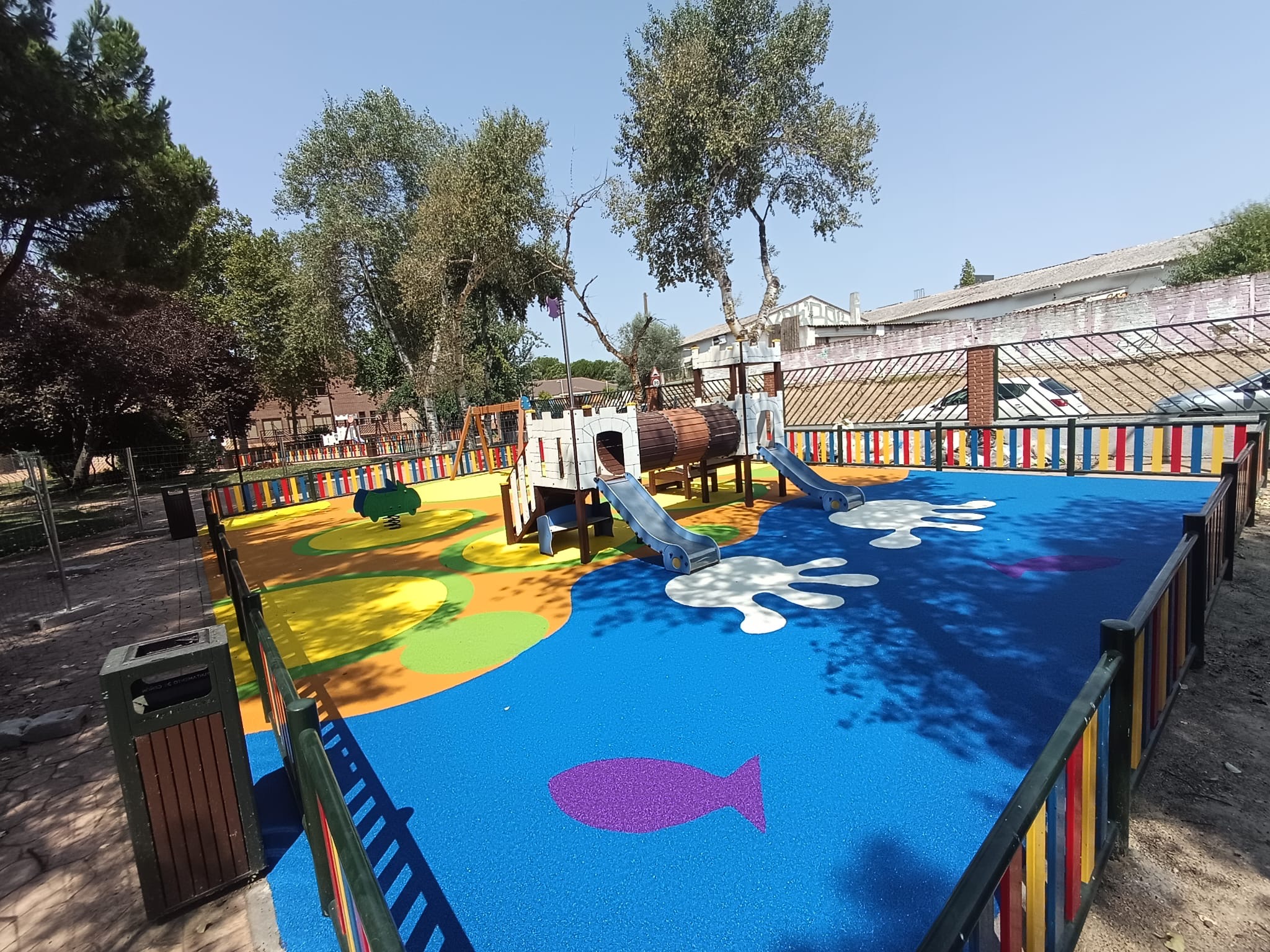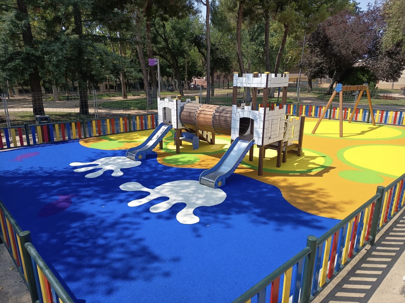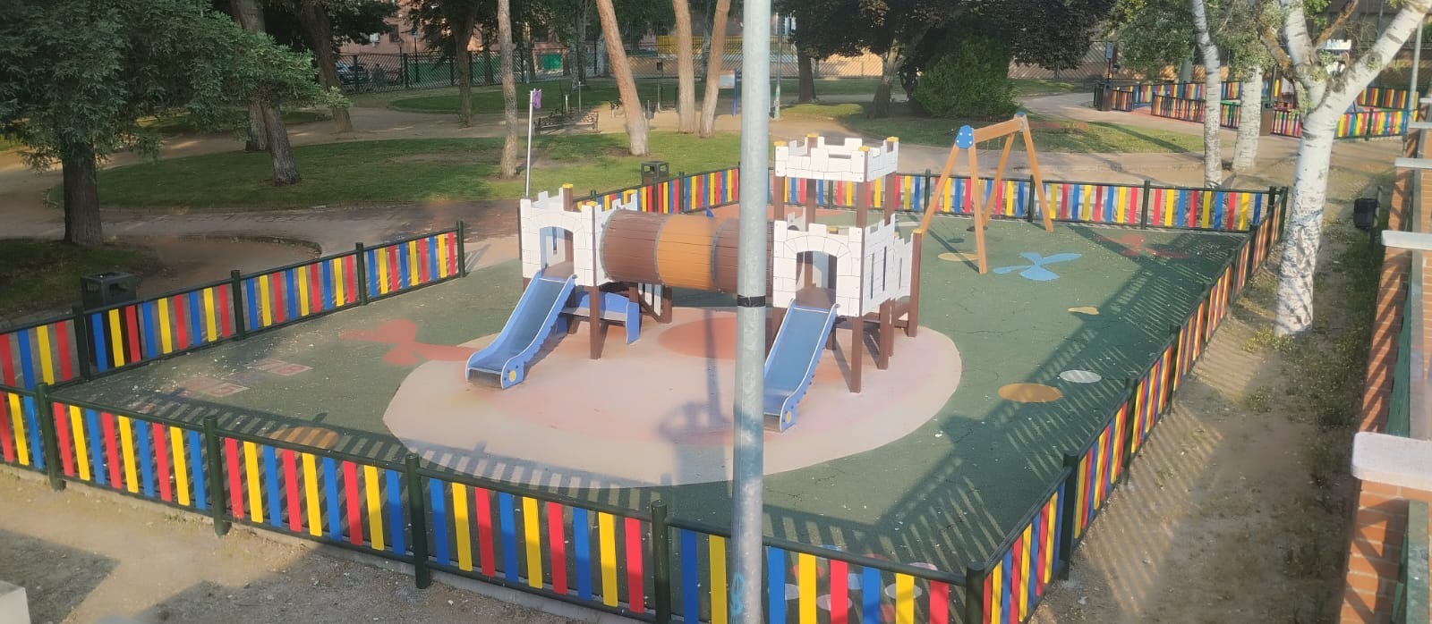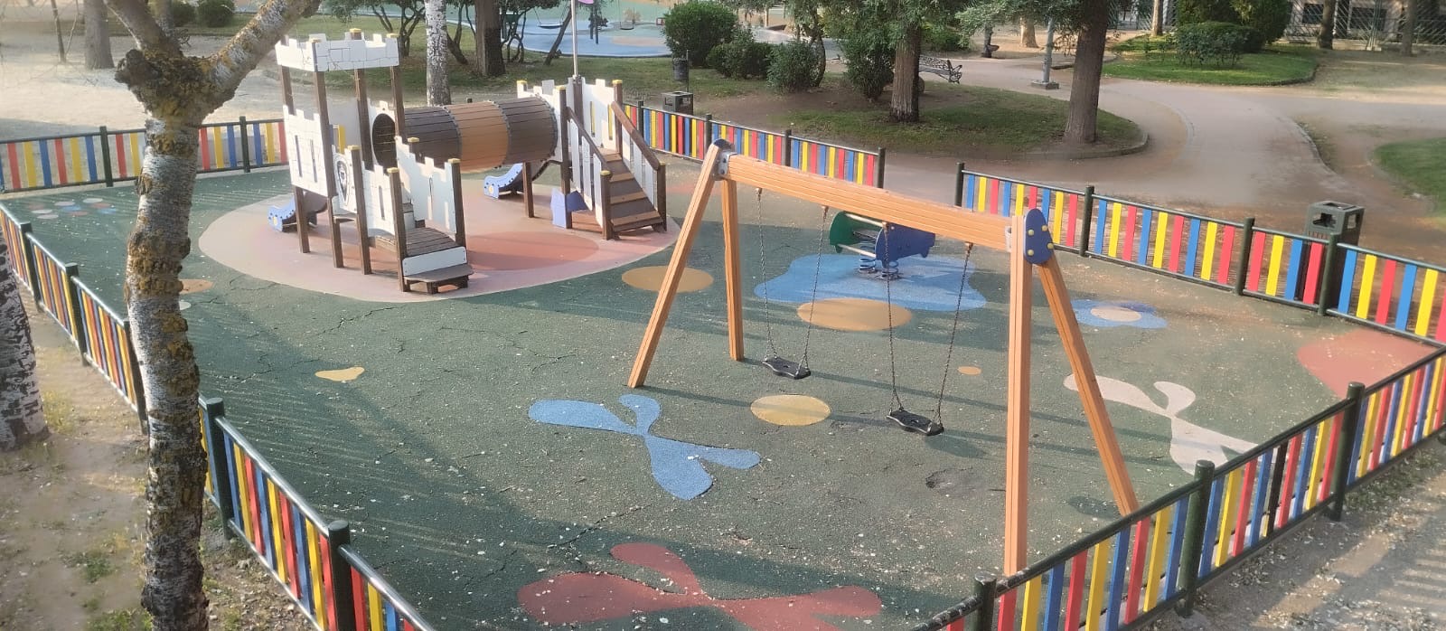 En el Parque Fuente de la Salud hemos renovado por completo el suelo de caucho de la zona infantil, sustituyendo el pavimento deteriorado por uno nuevo, más seguro, colorido y divertido.