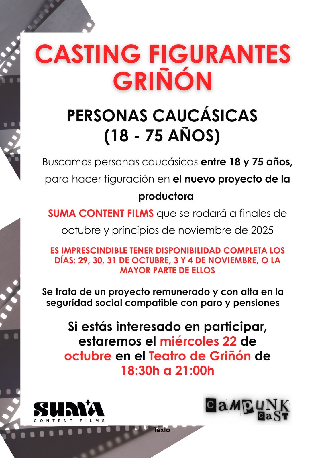 La productora SUMA CONTENT FILMS busca personas caucásicas y relacionadas con el ámbito de la albañilería, construcción… entre 18 y 75 años, para hacer figuración en el nuevo proyecto de la productora que se rodará a finales de octubre y principios de noviembre de 2025.