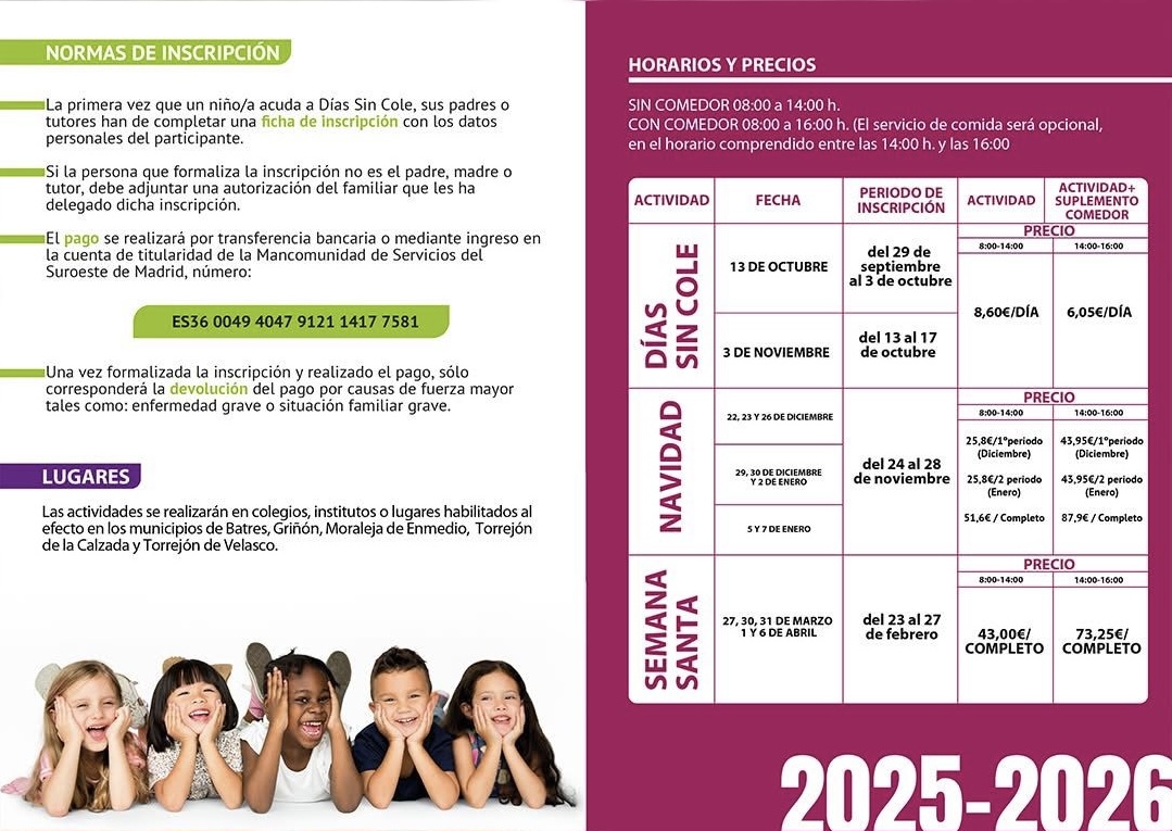 Actividad enfocada para niños de 4 a 11 años, deben de estar empadronados en Griñón y es gratuita.