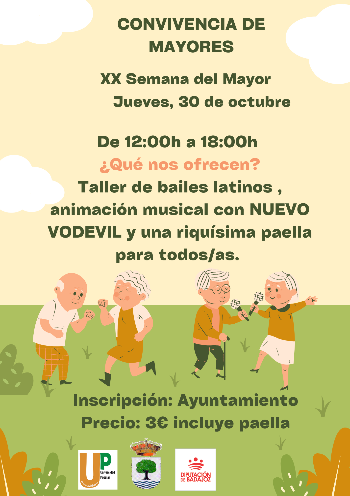 VIERNES, 31 DE OCTUBRE. CONVIVENCIA DE MAYORES A LAS 19:00H EN LA CASA DE LA JUVENTUD ( RECINTO FERIAL)