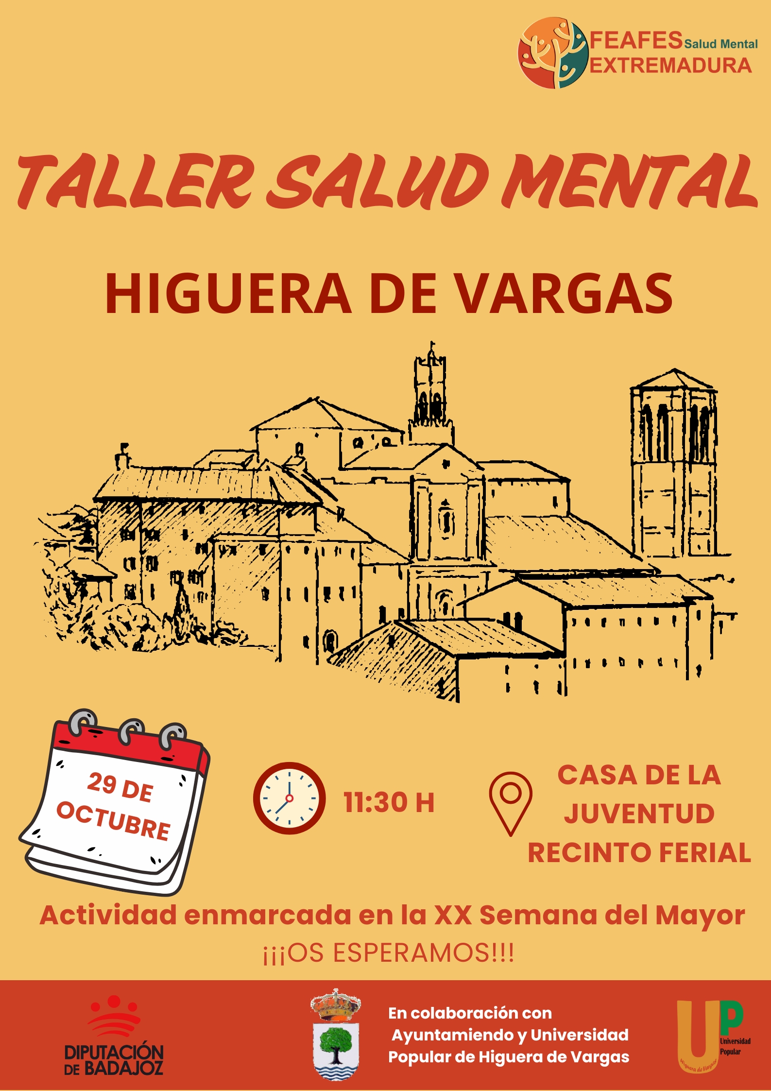 MIÉRCOLES, 29 DE OCTUBRE "TALLER DE SALUD MENTAL" A LAS 11:30H EN LA CASA DE LA JUVENTUD ( RECINTO FERIAL)