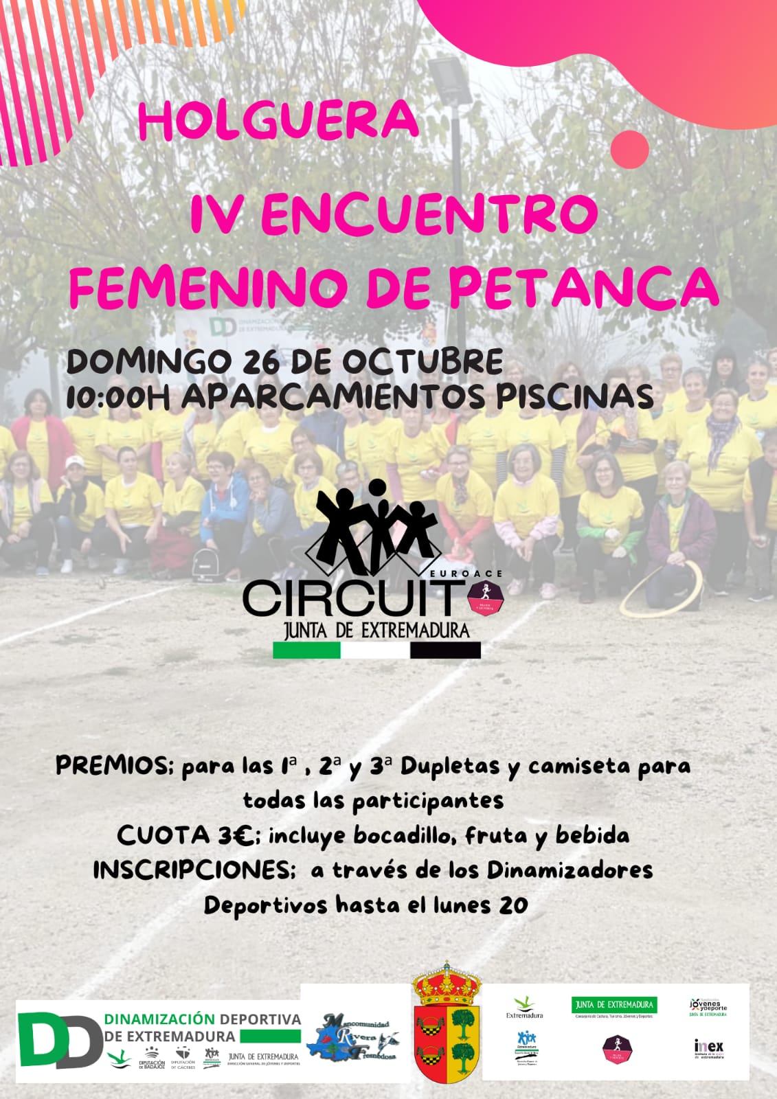 Se comunica que el próximo día 26 de octubre de 2025 se celebrará en la localidad el encuentro femenino de petanca a las 10 horas en los aparcamiento de la piscina.