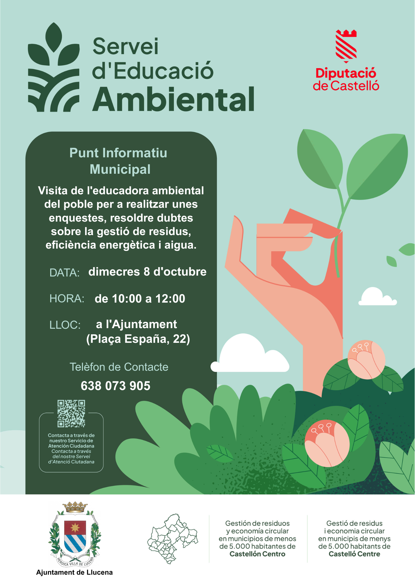 Punto Informativo Municipal Servicio de Educación, Comunicación y Participación Ambiental, mañana 8 de octubre, en la planta baja del Ayuntamiento. La educadora ambiental realizará una pequeña encuesta a la ciudadanía, resolverá dudas y recogerá sugerencias sobre la gestión de residuos.