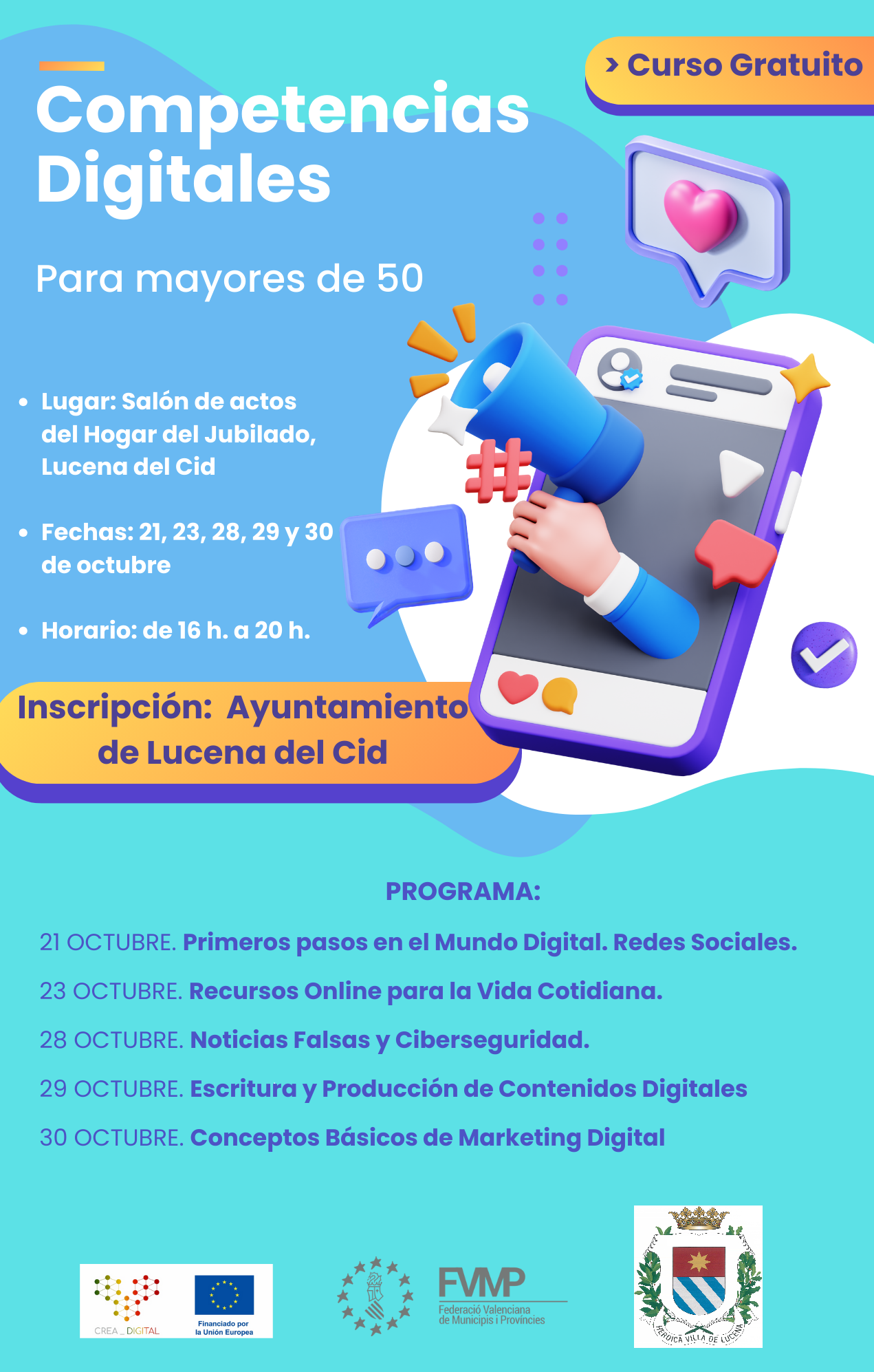 CURSO GRATUITO DE COMPETENCIAS DIGITALES PARA MAYORES DE 50, IMPARTIDO POR FVMP EN LUCENA DEL CID DEL 21 AL 30 DE OCTUBRE DE 2025