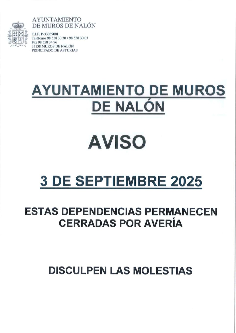 Os informamos que no disponemos de conexión telefónica en el Ayuntamiento a través de la compañía Movistar, por lo que no podemos recibir ni realizar llamadas por ese medio. Esperemos que el servicio se restablezca lo más pronto posible. Hasta ahora no nos ha permitido realizar el aviso por este medio. Esto se debe a una incidencia generalizada de esta compañía debido al corte eléctrico acaecido en el día de ayer.