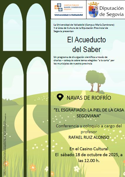 Organizan: Universidad de Valladolid (Campus María Zambrano) junto con el Ayuntamiento de Navas de Riofrío y el Área de Cultura de la Diputación Provincial de Segovia