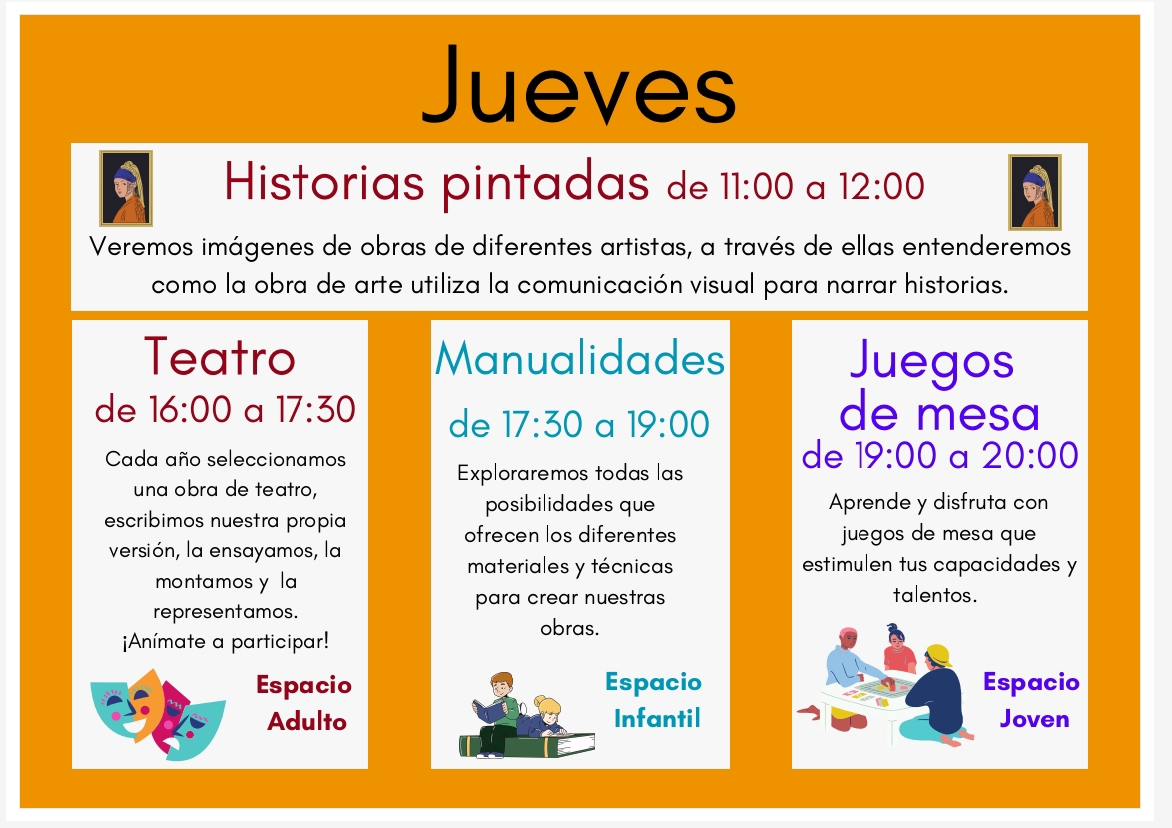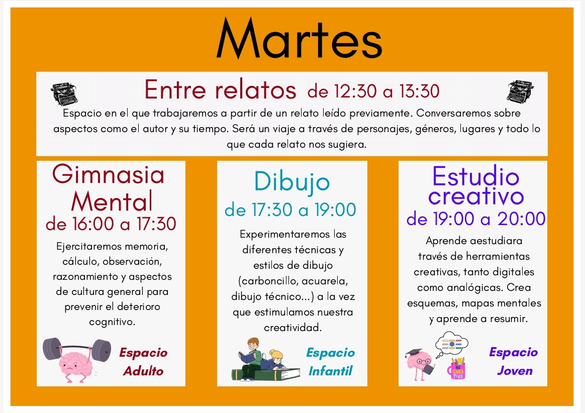 Diseñadas y adaptadas a cada grupo de edad (Espacio Infantil, de 4 a 11 años. Espacio Joven, a partir de 10 años. Espacio Adulto, a partir de 18). ¡Elige las que más te gusten!