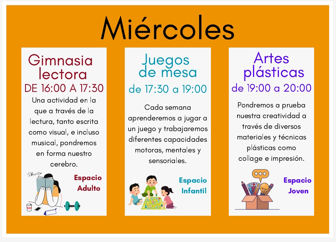 Próximamente compartiremos el cuadro de espacios (adulto, infantil y juvenil) con las actividades del Centro de Lectura 'Elvira Lindo' que se reiniciarán el mes de octubre.