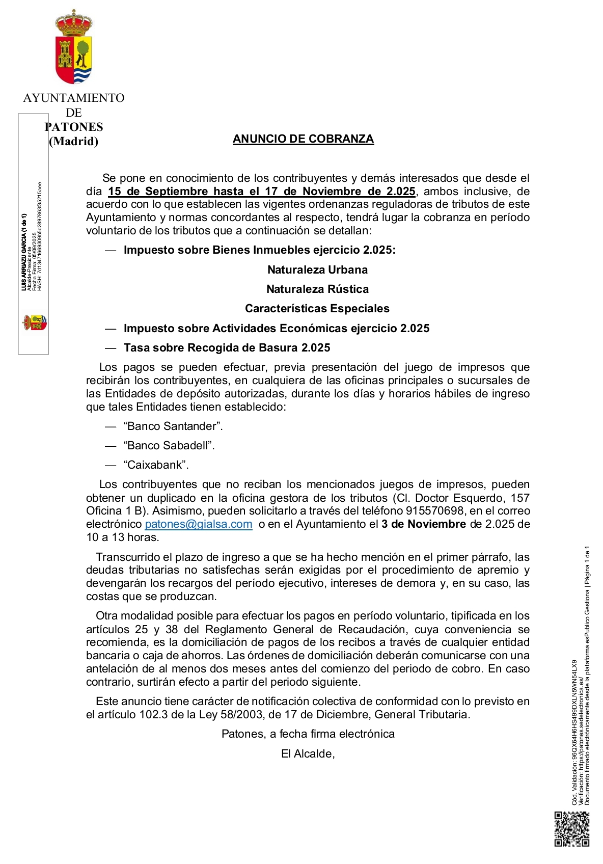 Buenos días se comunica que el día 2 de octubre se celebrará el pleno ordinario a las 17:00 en el Salón de Plenos del Ayuntamiento.