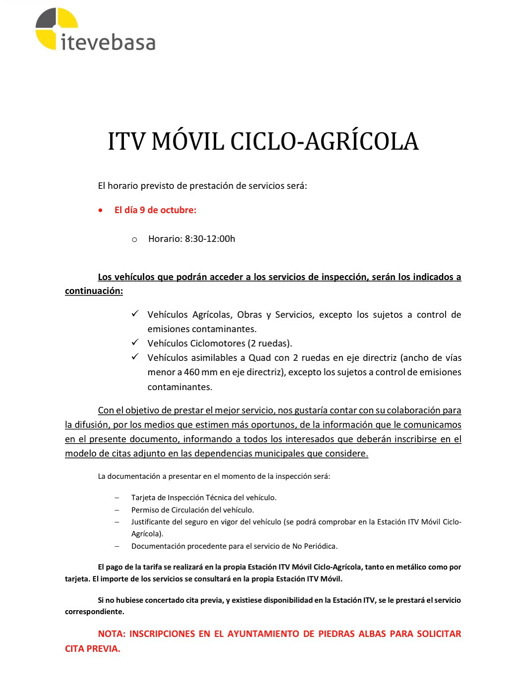 ITV MOVIL CICLO-AGRÍCOLA. FECHA: 9 DE OCTUBRE