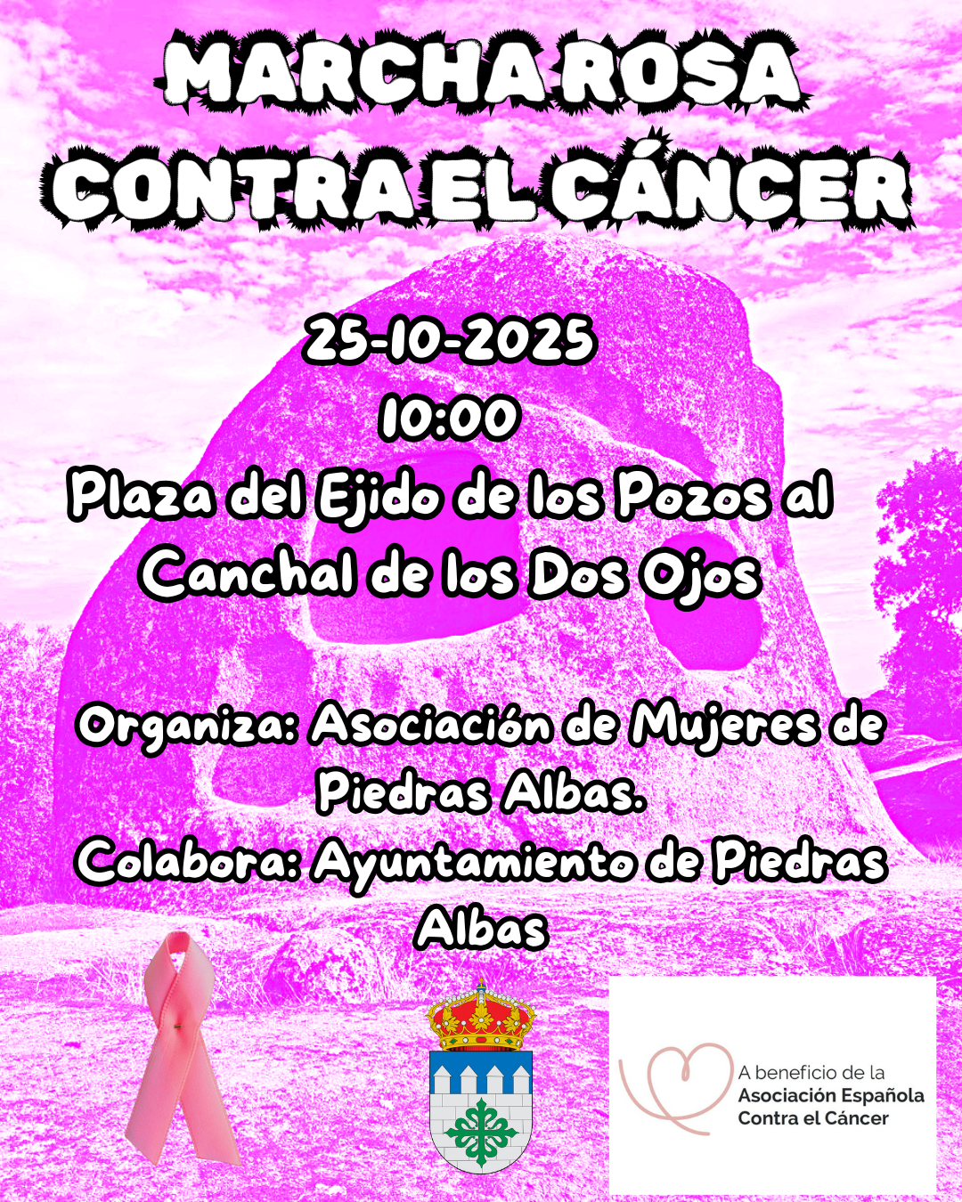 La Asociación de Mujeres de Piedras Albas, con la colaboración del Ayuntamiento de Piedras Albas, organiza el sábado 25 de octubre la Marcha Rosa Contra el Cáncer.