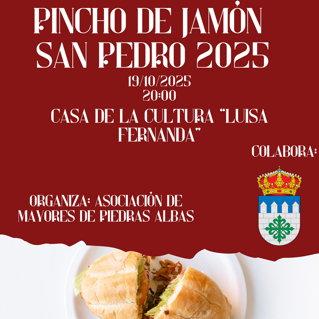 Con motivo de las fiestas de San Pedro 2025 la Asociación de Mayores de Piedras Albas ofrece mañana domingo, 19 de octubre, un “pincho” a las vecinas y los vecinos de Piedras Albas.