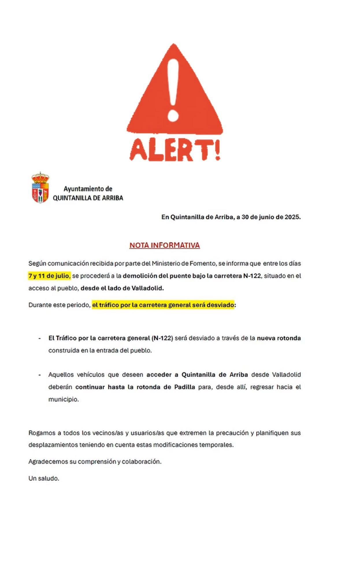 Desde la Subdelegación del gobierno nos informan de las obras en la N122 que nos afectarán a lo largo de un año.