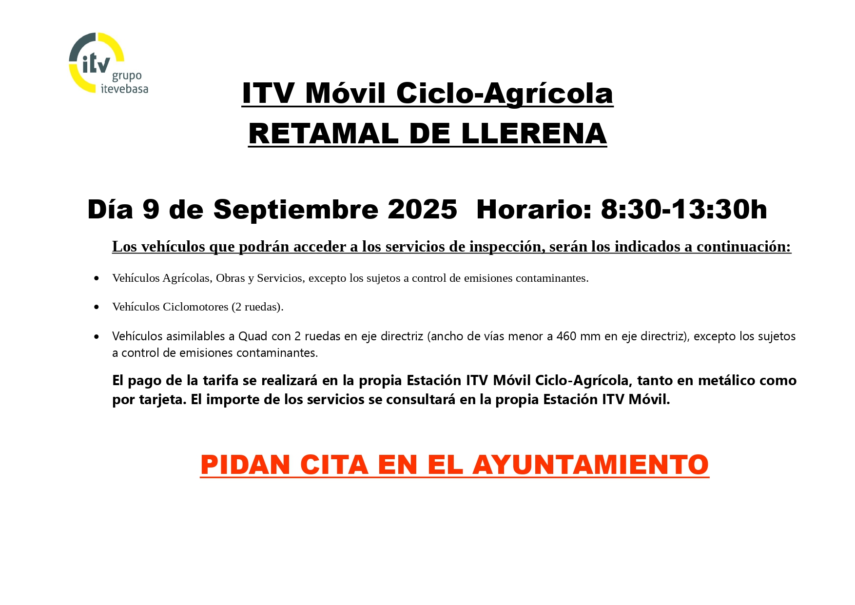 ITV MAQUINARIAS AGRÍCOLAS Y CICLOMOTORESInfo General18-Septiembre-2025 09:35