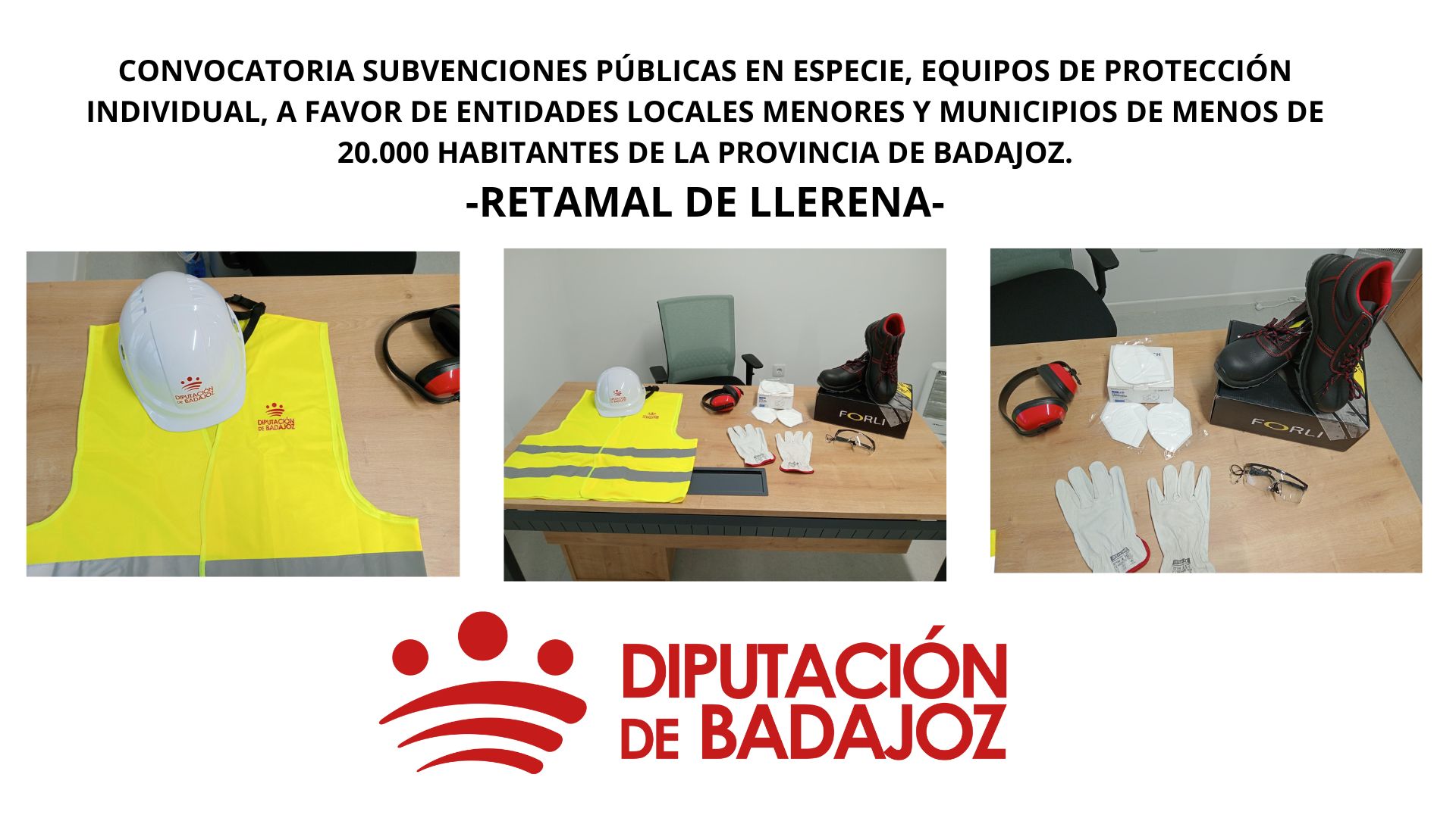 La Diputación de Badajoz dota al Ayuntamiento de Retamal de Llerena con Equipos de Protección Individual para todos sus trabajadores (Chalecos, Botas, Gafas de Protección, Guantes, Orejeras, Cascos y Mascarillas)