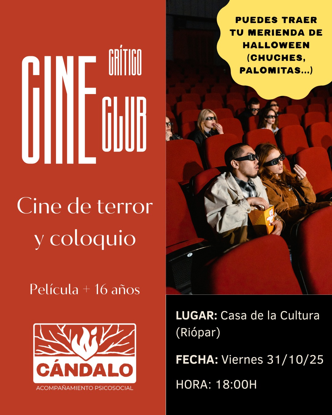 Llega la segunda sesión del ciclo de Cine Fórum. En esta ocasión, coincidiendo con Halloween, visionaremos una película de terror y, al finalizar, abriremos un diálogo compartido para intercambiar opiniones, ideas e impresiones.