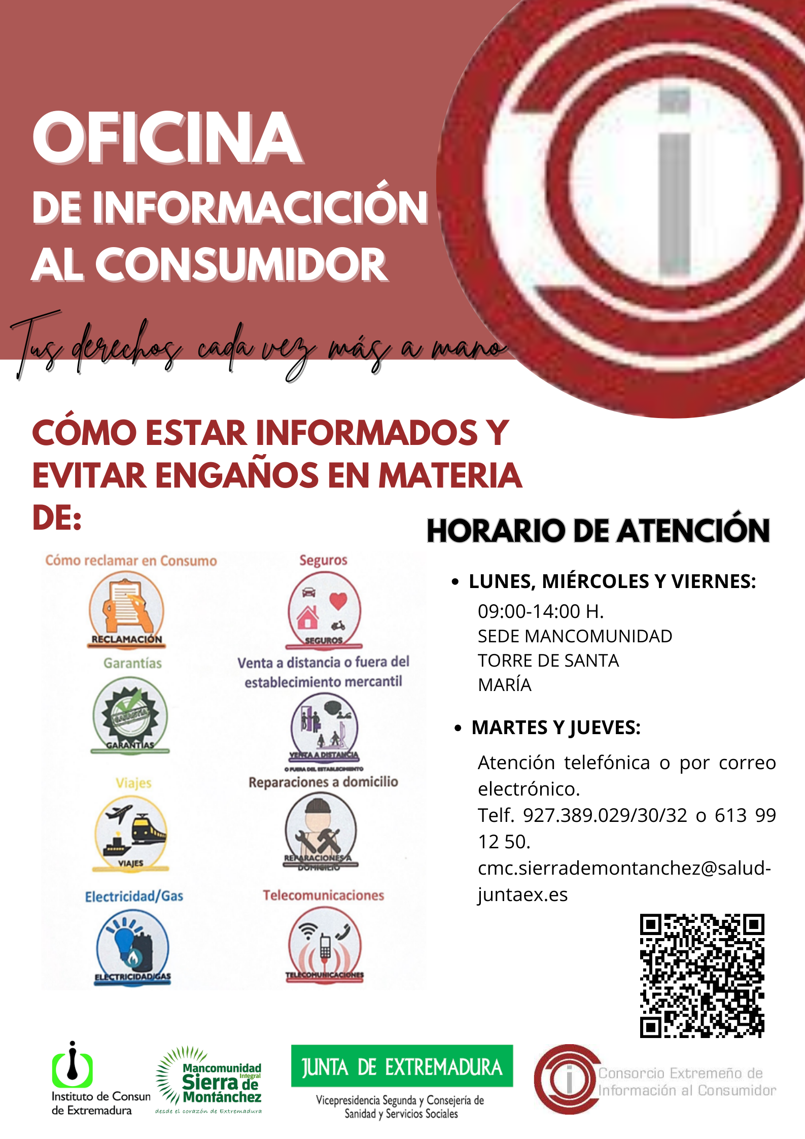 periodo de 3 meses, con cargo a la subvención de la Diputación de Cáceres “Plan Provincial¡¡RECORDAMOS COMIENZO DE CURSO ESTA TARDE A LAS 17:30 HORAS!! FORMACIÓN GRATUITA SOBRE FUNCIONAMIENTO DE TELÉFONOS MÓVILESInfo General29-Septiembre-2025 09:48   CALENDARIO - RUTAS OCTUBRE CONSORCIO EXTREMEÑO DE INFORMACIÓN AL CONSUMIDORInfo General26-Septiembre-2025 17:30 Se adjunta el Calendario de rutas del Servicio de Consumo para el mes de OCTUBRE del Consorcio Extremeño de Información al Consumidor.