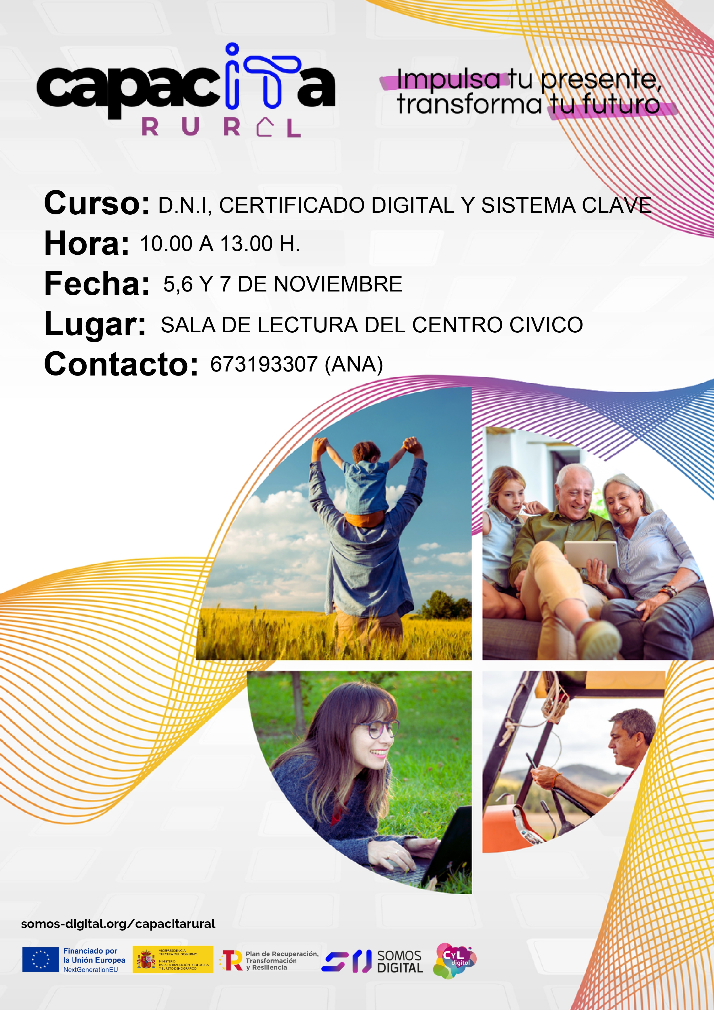 Capacita Rural junto con Cyl Digital, nos ofertan el curso de DNI electrónico, certificado digital y sistema clave para el mes de noviembre, aquellas personas interesadas ponerse en contacto a través del mail cultura@serrada.es o telf.: 673193307. Fecha de inscripción hasta el 3 de noviembre. Mas información en el cartel adjunto