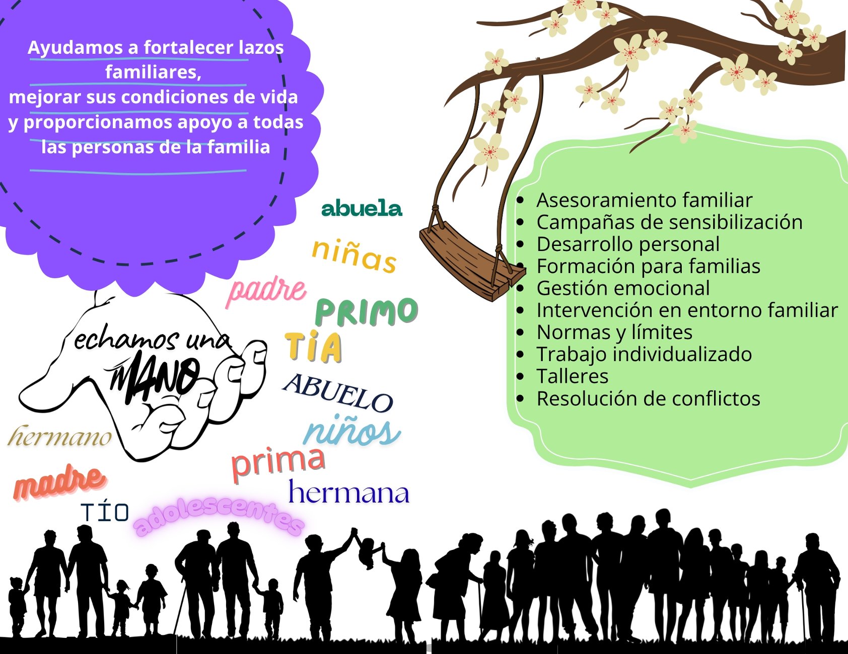 El Programa de Atención a las Familias ofrece apoyo para fortalecer los lazos familiares, mejorar las condiciones de vida y acompañar a todas las personas que forman parte del hogar. Nuestro objetivo es facilitar un entorno familiar seguro, afectivo y estable.