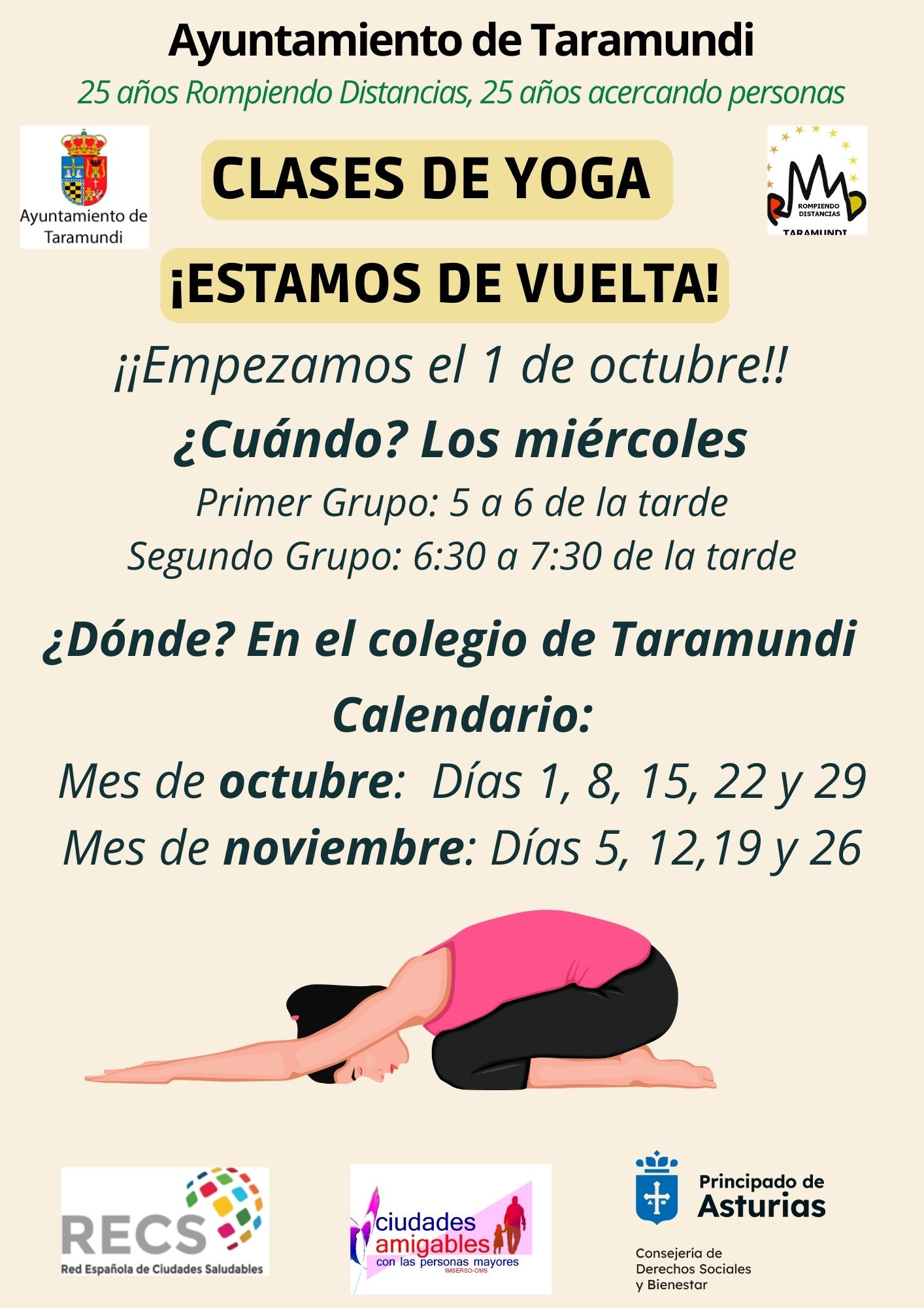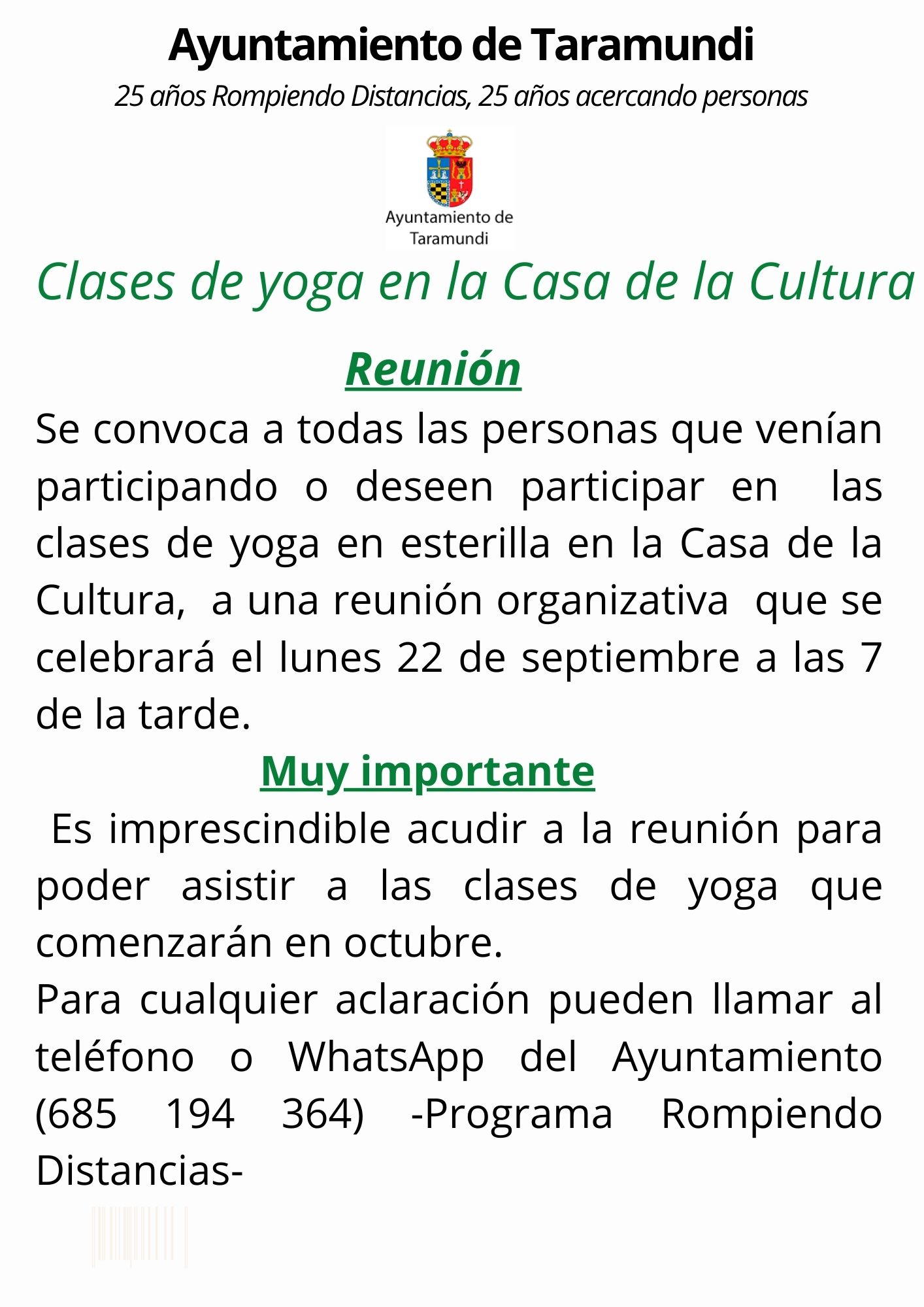 Está previsto que las clases de yoga que se venían desarrollando en la Casa de la Cultura comiencen el primer día de octubre pero debido a la reducción en el número de asistentes, es necesario realizar una reorganización de los grupos.
