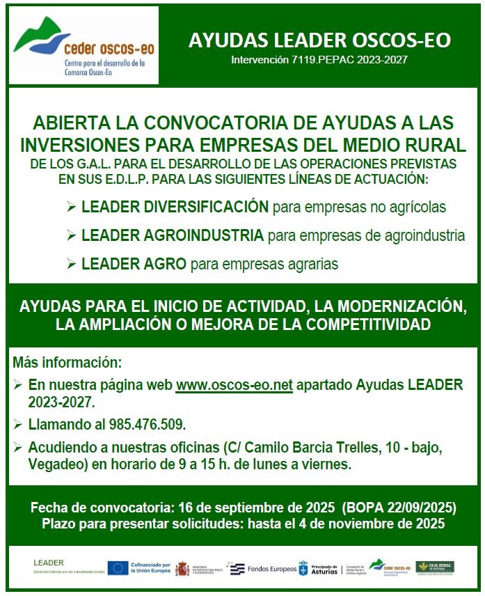 AYUDAS LEADER OSCOS-EO: AMPLIACIÓN PLAZO SOLICITUD