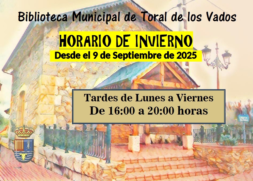 Os informamos que la biblioteca municipal de Toral de los Vados estará cerrada del 2 al 8 de Septiembre de 2025 (ambos días incluidos).