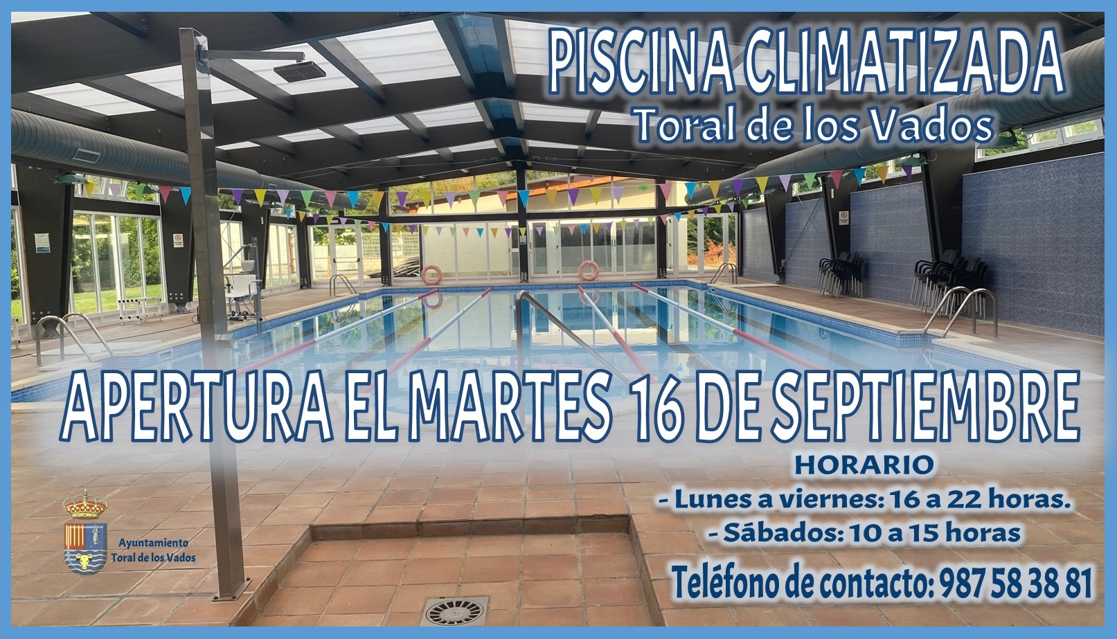 LA PISCINA CLIMATIZADA DE TORAL DE LOS VADOS ABRE EL MARTES 16 DE SEPTIEMBRE