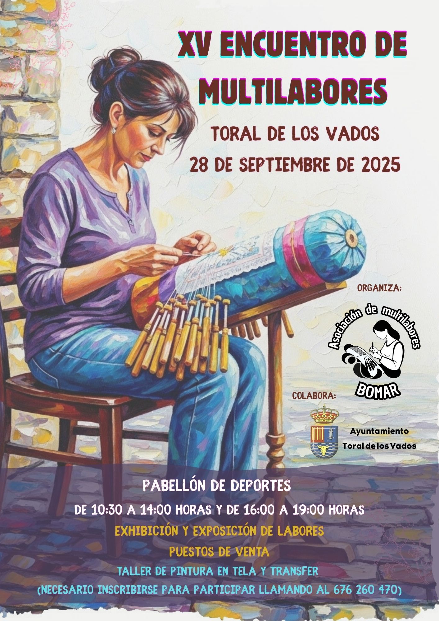 Os recordamos que este domingo 28 de Septiembre de 2025 tendrá lugar en el Pabellón Municipal de deportes situado en el C/ El Lago, el XV Encuentro de multilabores que organiza la Asociación Bomar en colaboración con el Ayuntamiento de Toral de los Vados.