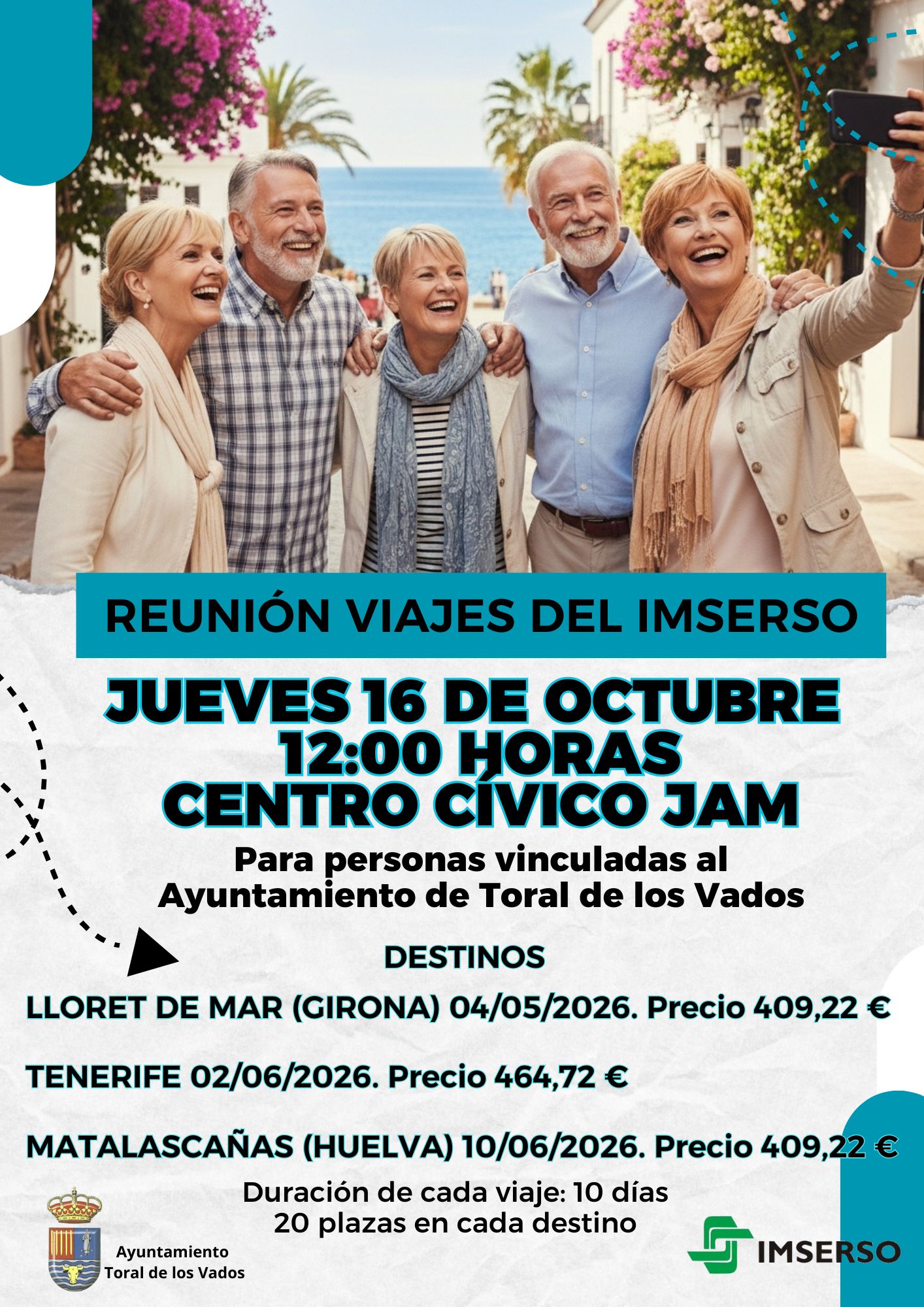 Se convoca a todas las personas acreditadas en el IMSERSO y vinculadas al Ayuntamiento de Toral de los Vados a una reunión informativa sobre el programa de vacaciones 2025-2026.