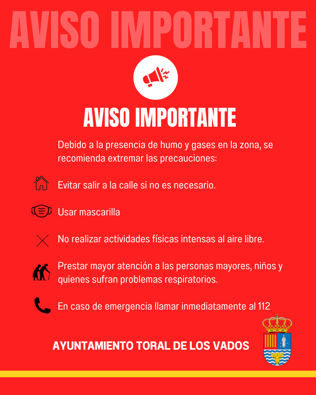Debido a la presencia de humo y gases en la zona, se recomienda extremar las precauciones en materia de salud ambiental:
