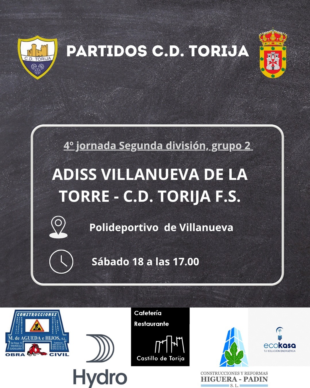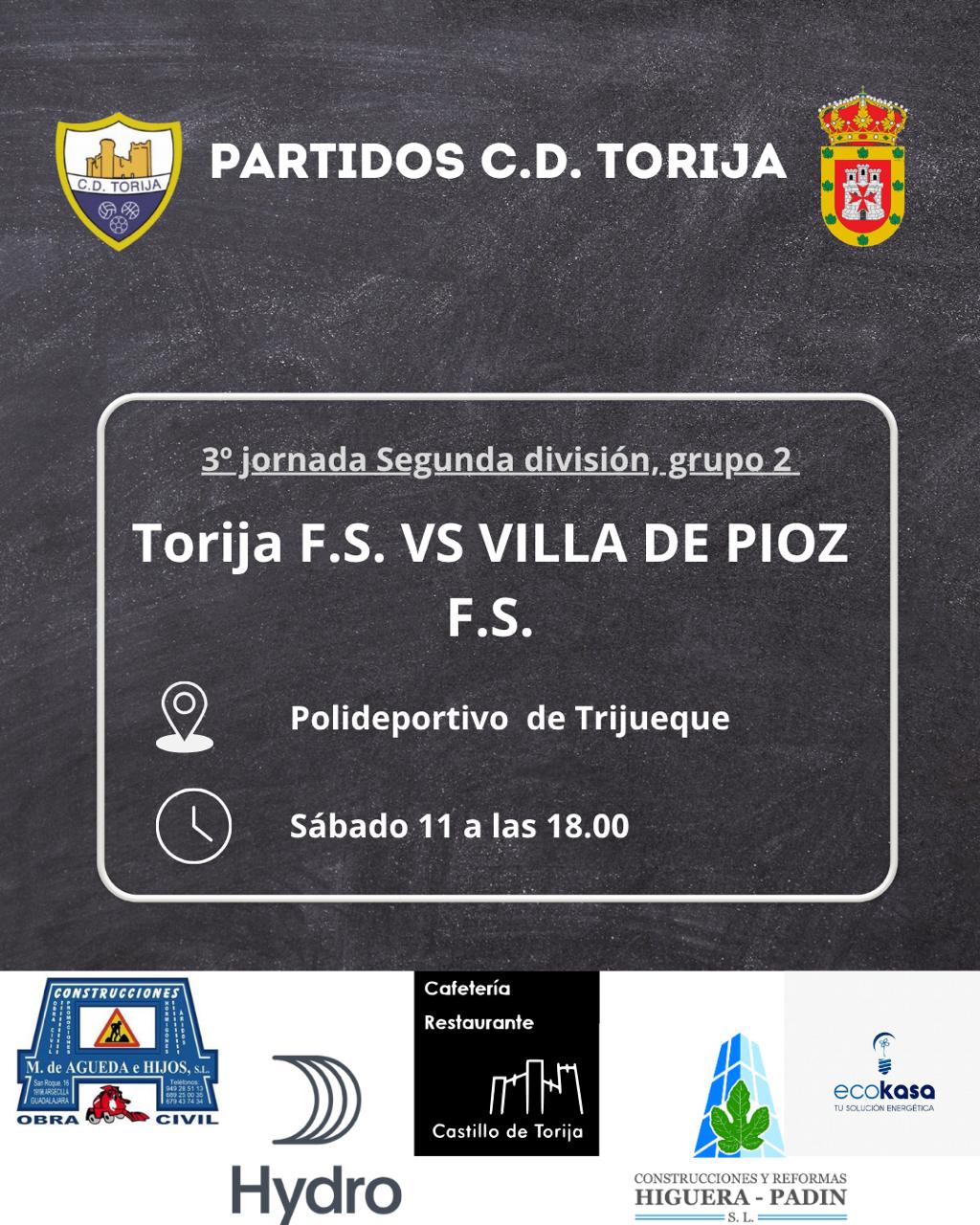 FÚTBOL SALA. LIGA PROVINCIAL SENIOR. TERCERA JORNADA DE LA SEGUNDA DIVISIÓN, GRUPO II. 𝐂𝐃 𝐓𝐎𝐑𝐈𝐉𝐀 𝐕𝐒 𝐕𝐈𝐋𝐋𝐀 𝐃𝐄 𝐏𝐈𝐎𝐙