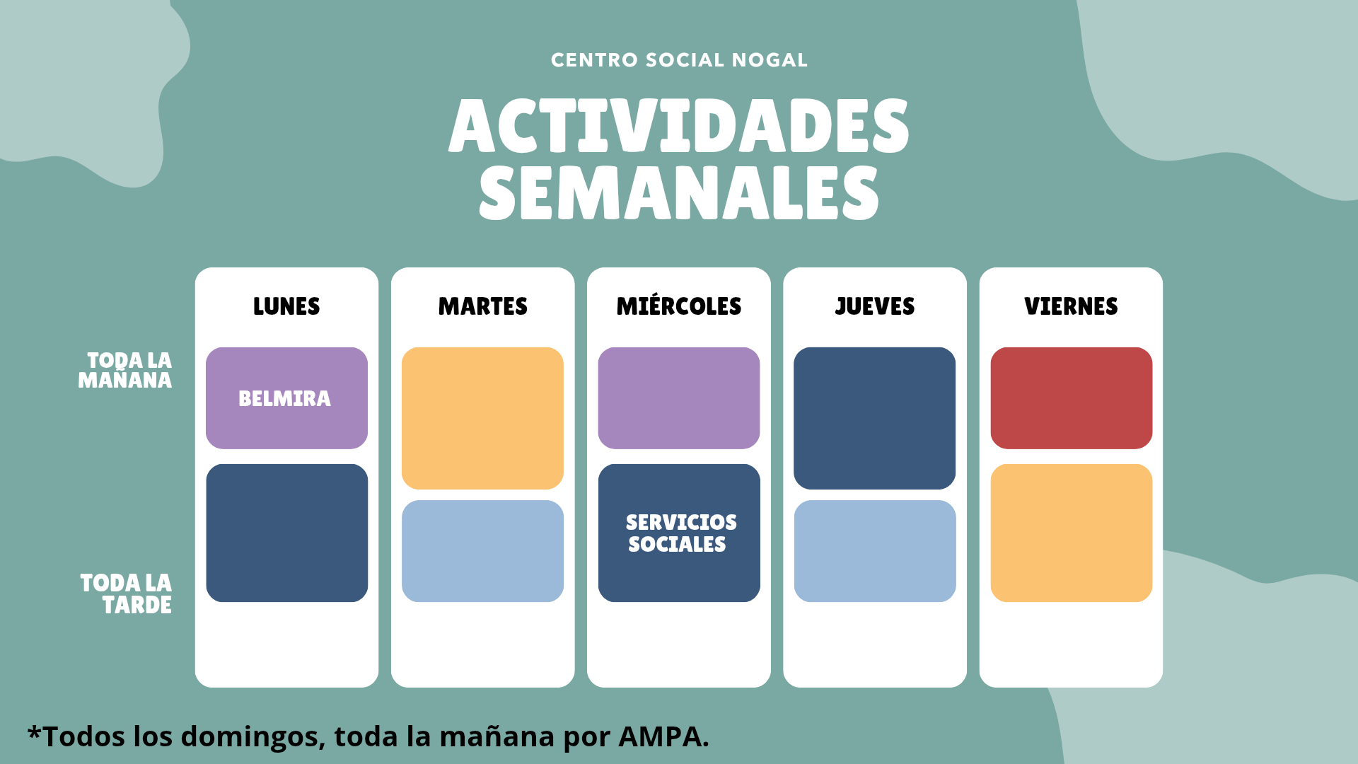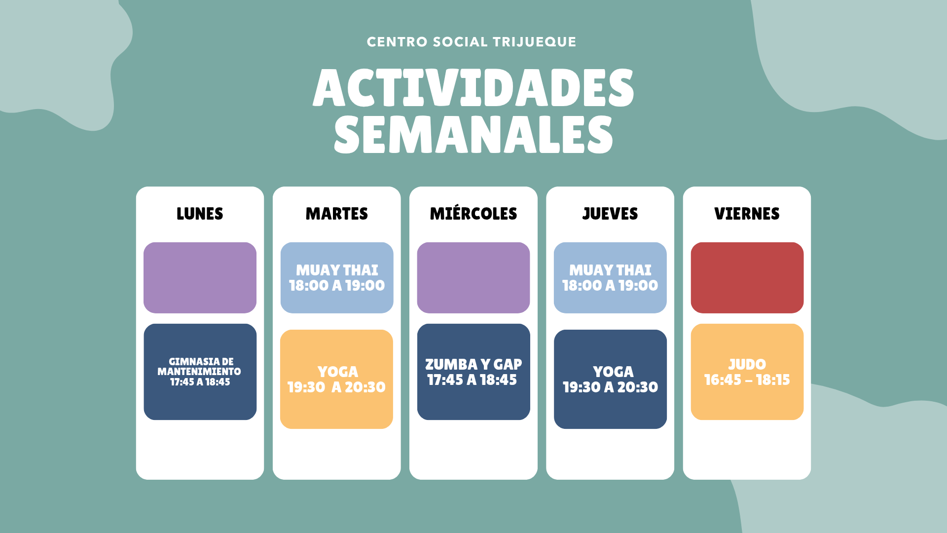 Horarios de las actividades y ocupaciones de los centros sociales, biblioteca y polideportivo.