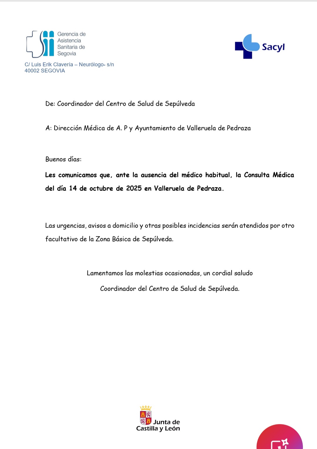 . Pueden dirigirse a esta Secretaria a través de correo electrónico: vallerueladepedraza@gmail.com o de su sede electrónica: vallerueladepedraza.sedelectronica.es