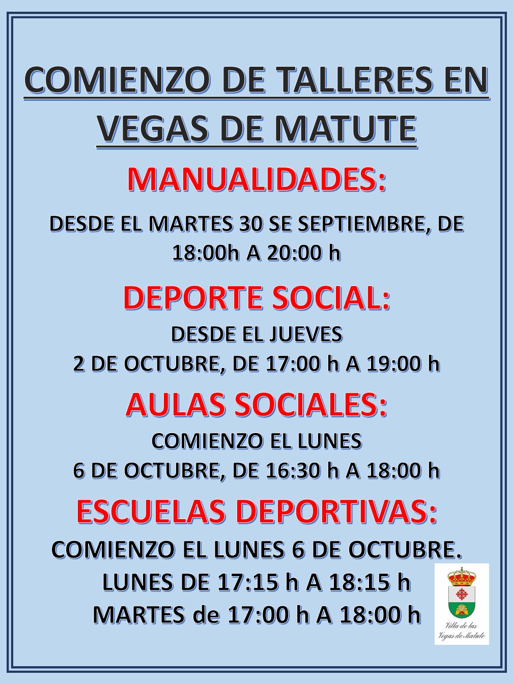 SE INFORMA QUE YA SE HA ABIERTO EL PLAZO PARA INSCRIBIRSE EN EL CURSO DE AULAS SOCIALES Y MANUALIDADES TEMPORADA 2025-2026 HASTA EL 31 DE JULIO, LA INSCRIPCION DEBERA REALIZARSE EN EL AYTO. EN HORARIO DE OFICINA. -