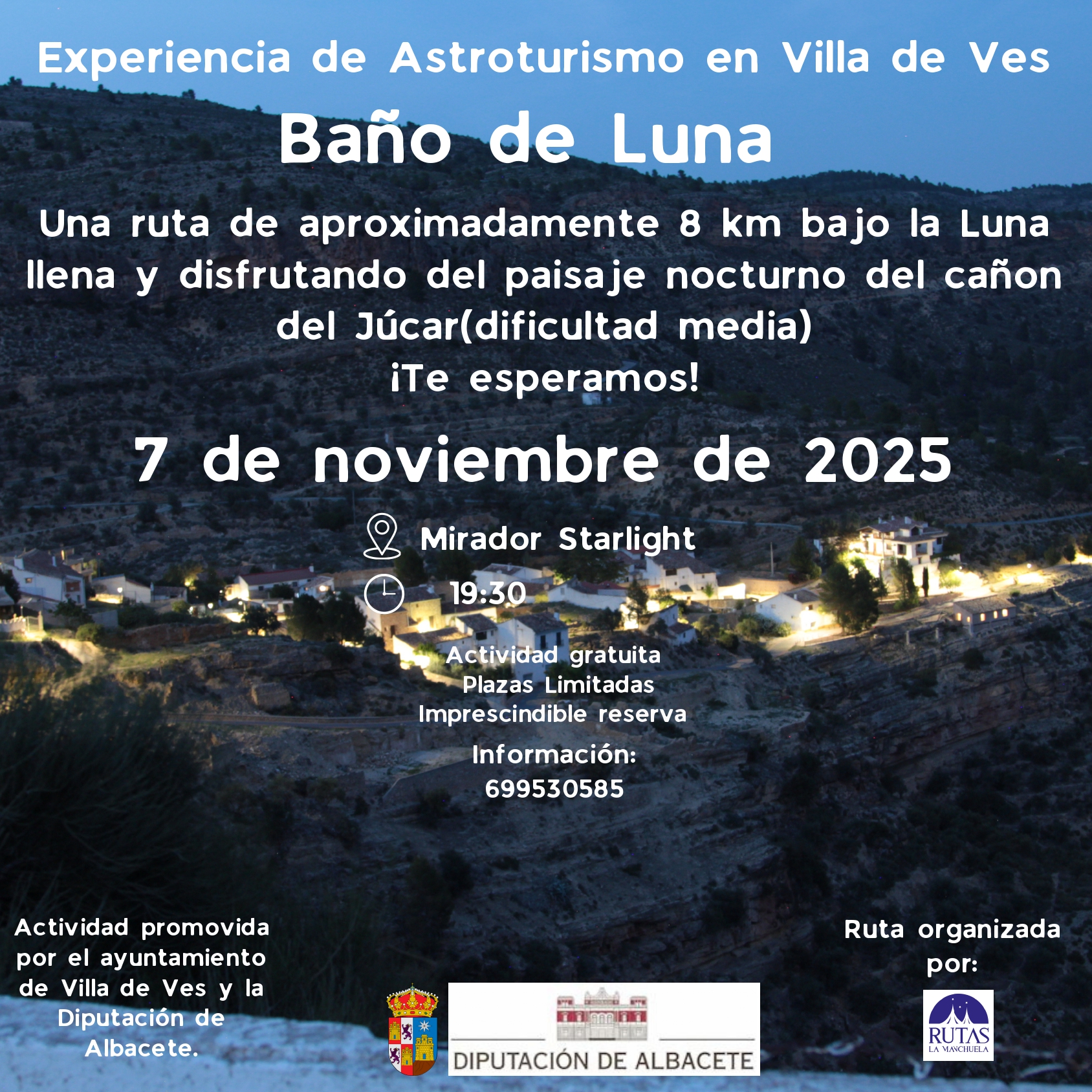 Con una subvención de la Diputación de Albacete se organizarán varias rutas nocturnas en el municipio, más información de las rutas en los carteles adjuntos.