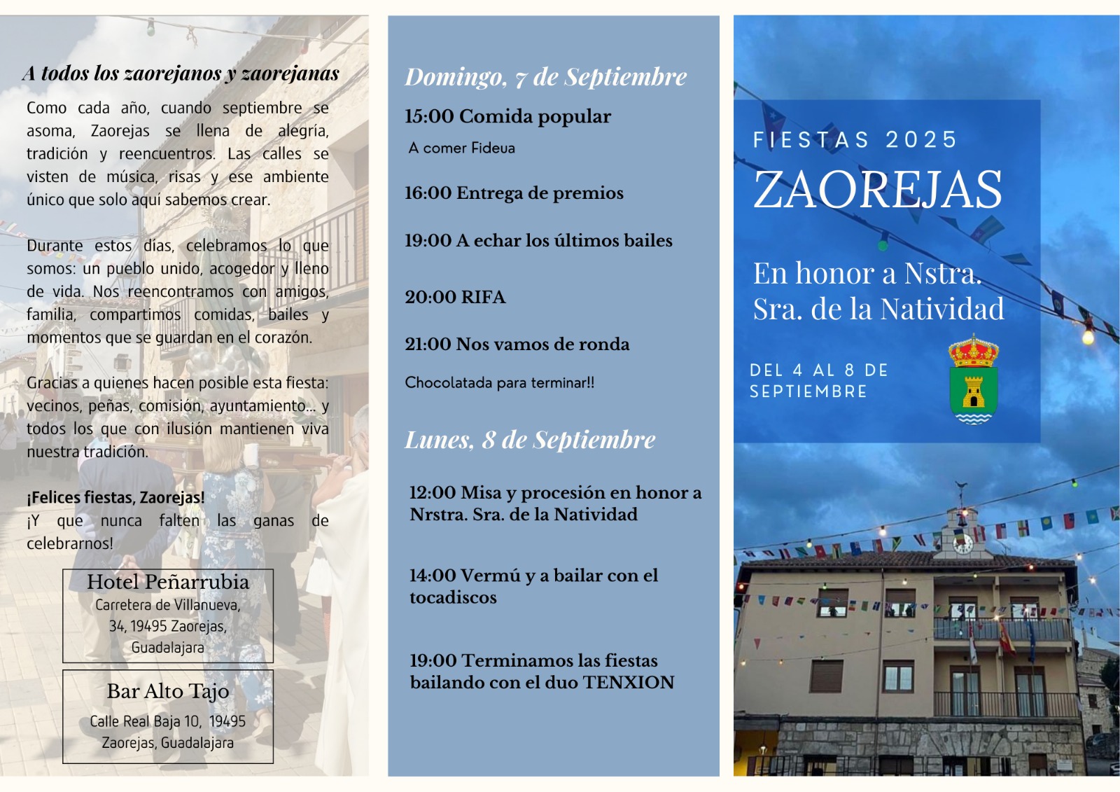 Fiestas patronales de Zaorejas en honor a Nuestra Señora de la Natividad (del 4 al 8/09/2025)