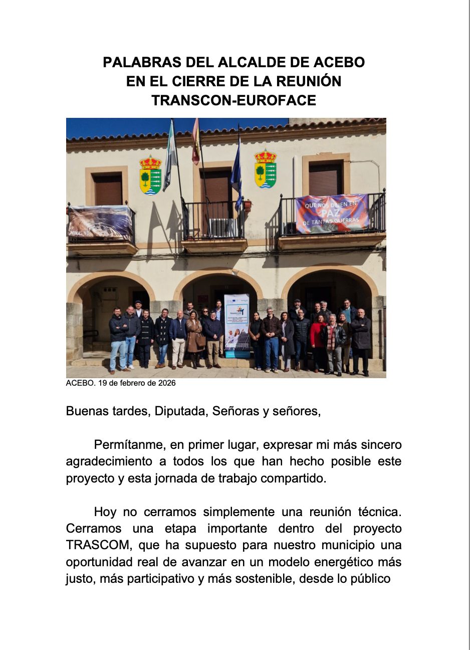 Acebo avanza en la puesta en marcha de su comunidad energética en el marco del proyecto transfronterizo TRANSCOM-EUROACE