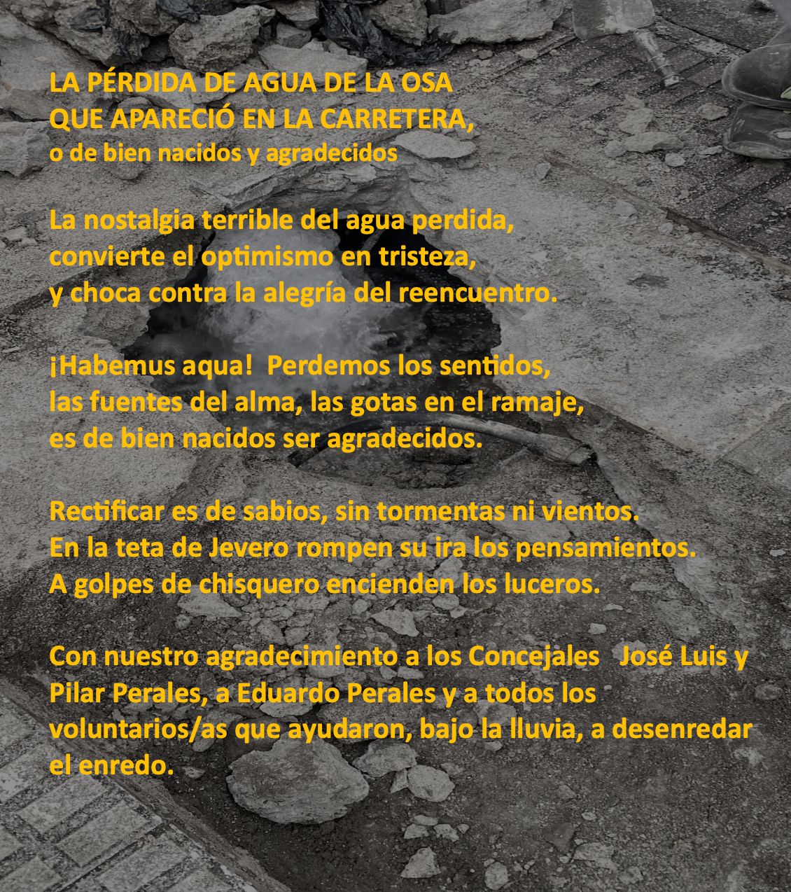 SE COMUNICA QUE YA ESTA RESTABLECIDO EL SERVICIO DE AGUA EN LA CALLE CABO LORENZO PUERTO -