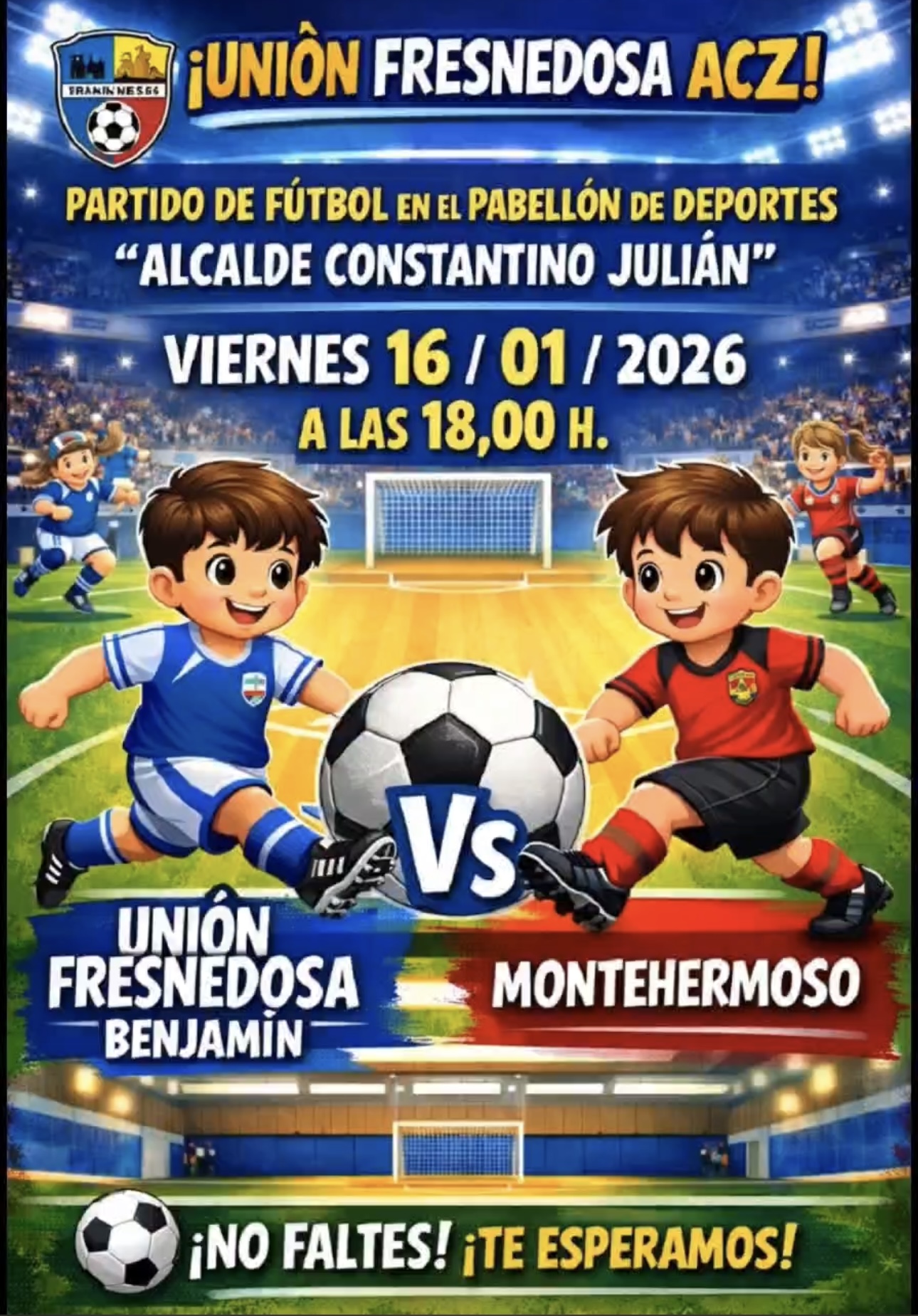 Esta tarde, VIERNES, 16 de enero, a partir de las 18:00 horas (SEIS DE LA TARDE), en el Pabellón Municipal de Deportes “Alcalde Constantino Julián”, partido del equipo de los benjamines.