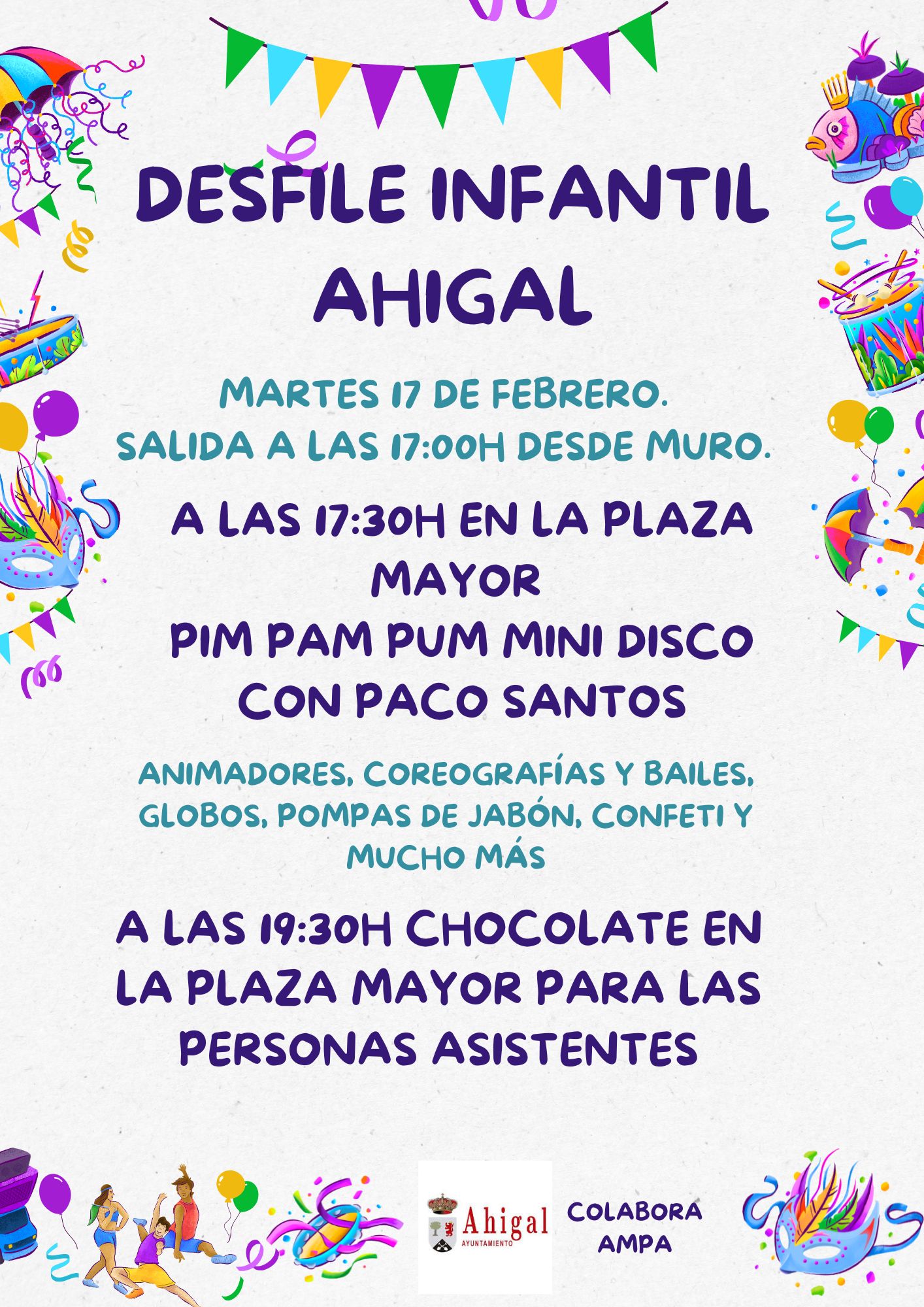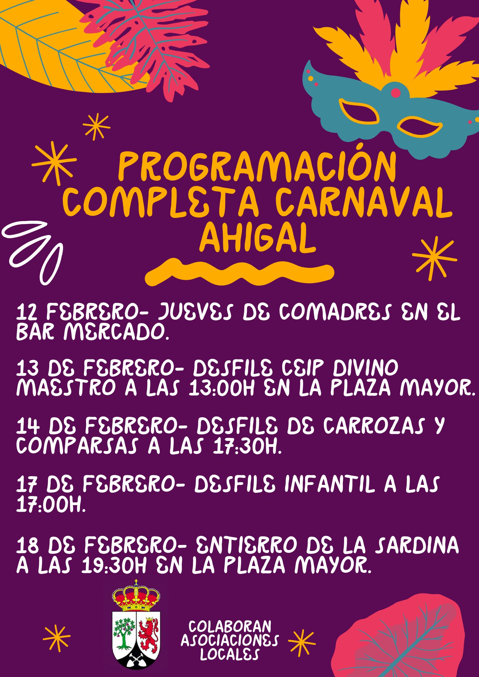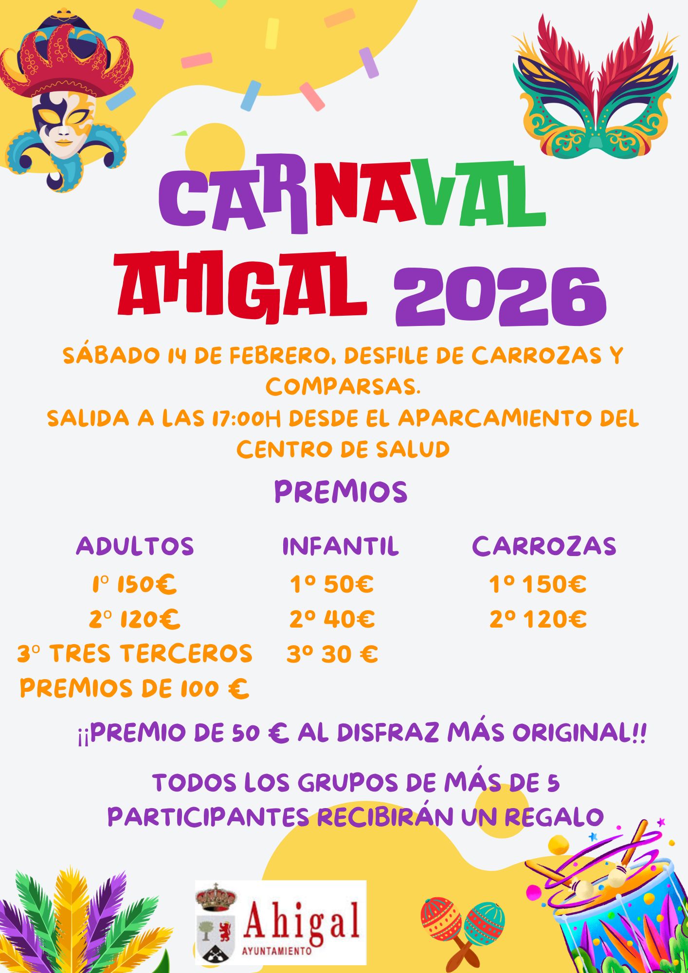 Sábado 14 de febrero se realizará el desfile de carrozas y comparsas a las 17:00h con salida desde el aparcamiento del centro de salud.