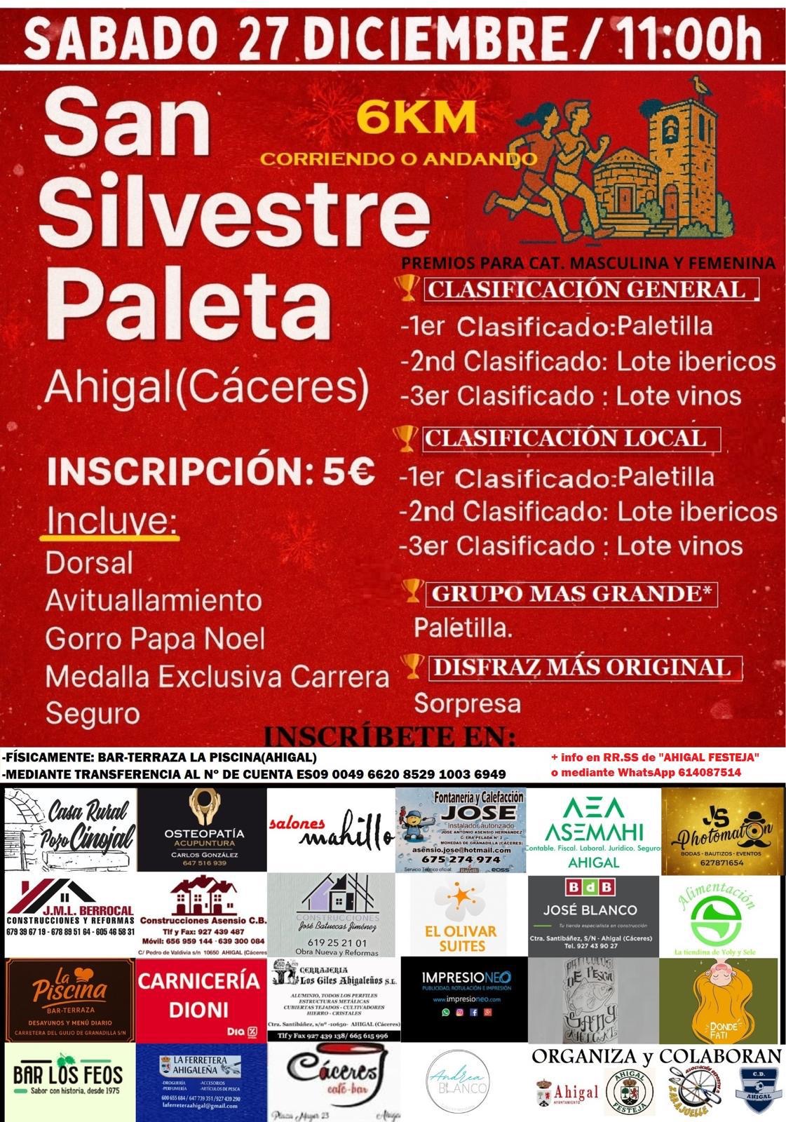 Mañana desde las 9 de la mañana en la Plaza Mayor empezará la previa de la I SAN SILVESTRE PALETA.