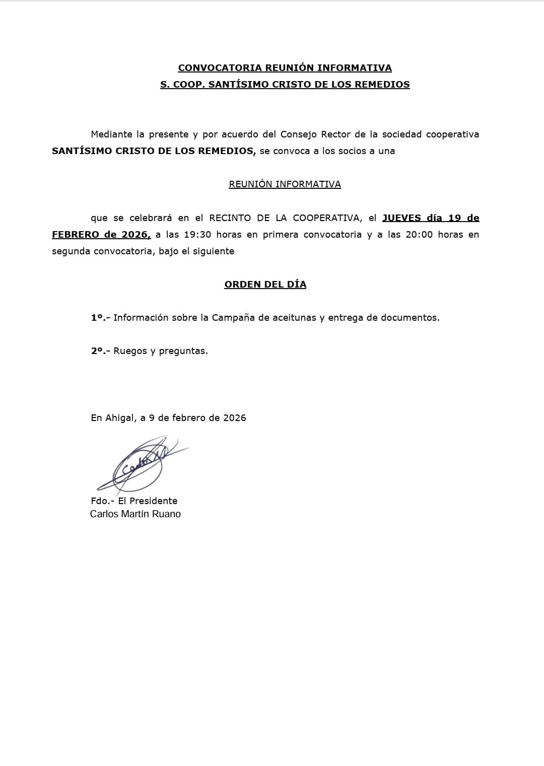 CIERRE PUNTUAL OFICINA SUBCOMARCAL AHIGAL