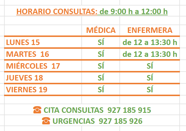 Horario de apertura a partir del próximo lunes día 22 de septiembre: